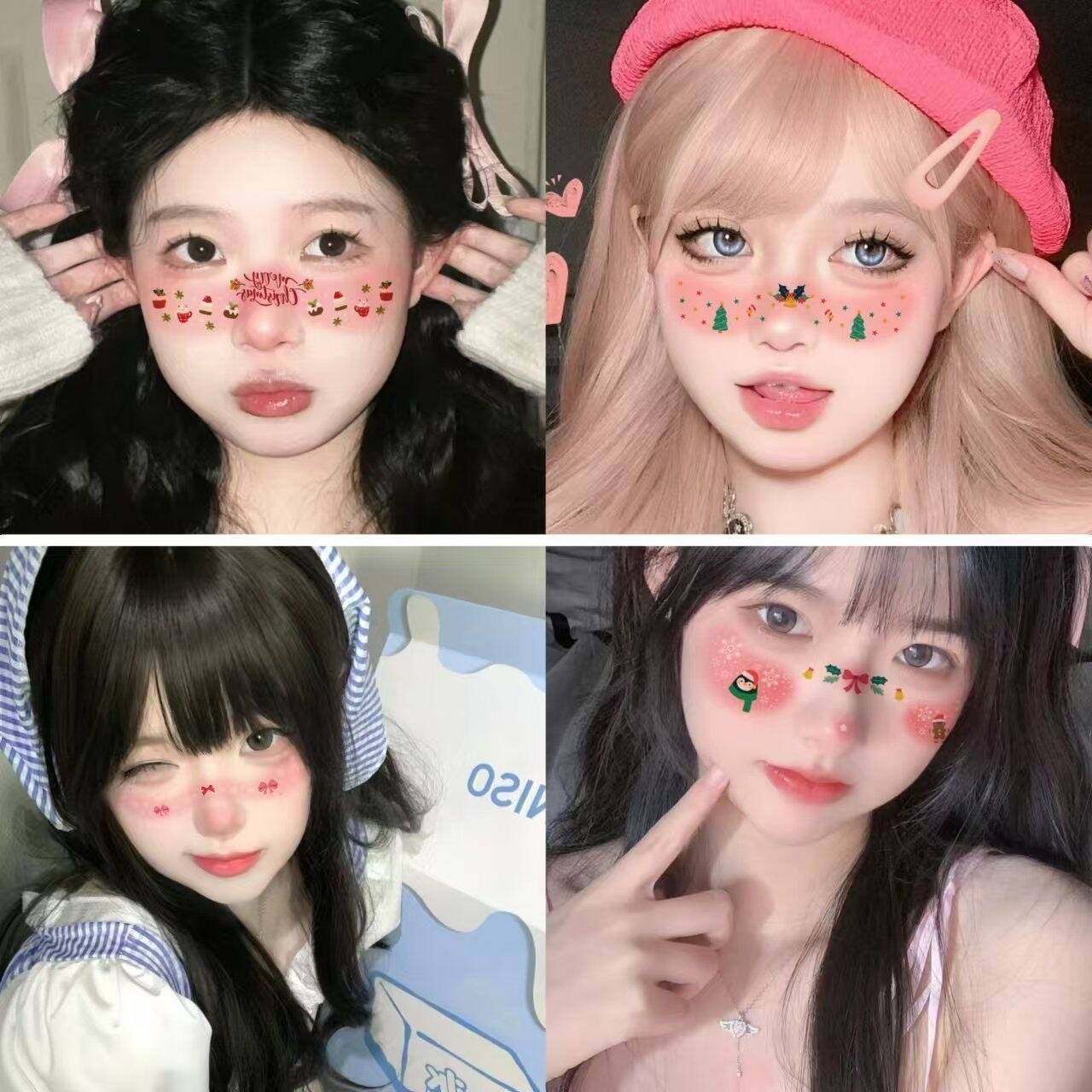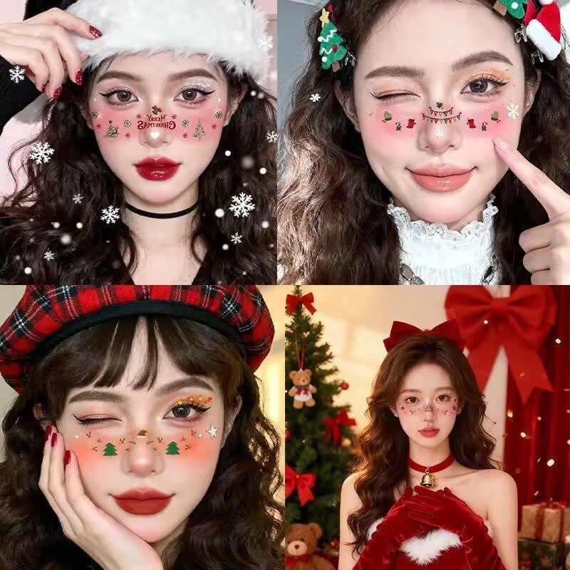 圣诞节创意妆容脸贴cos少女心甜美腮红仿妆纹身贴平安夜闺蜜聚会氛围感拍照贴纸高颜值可水洗一次性化妆道具