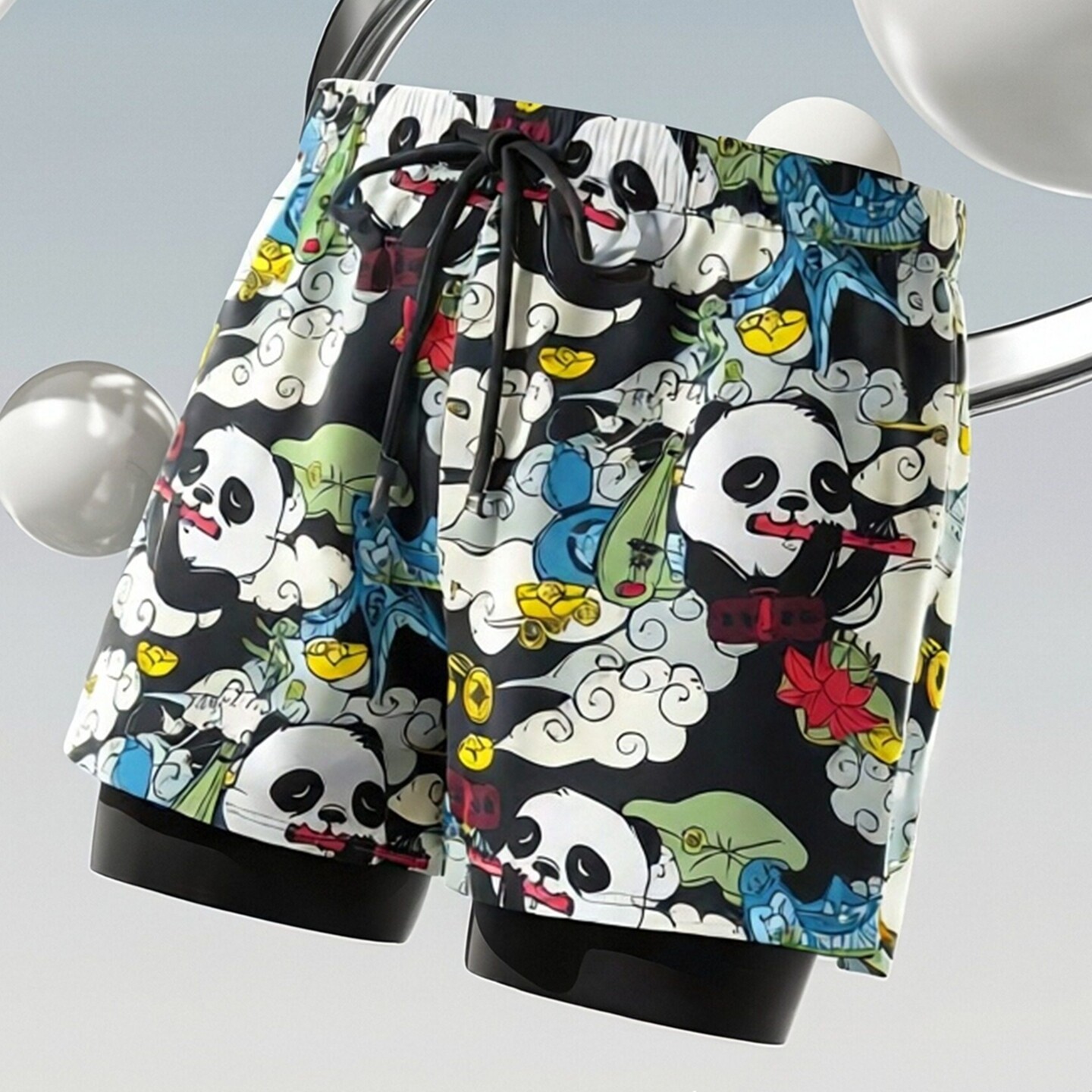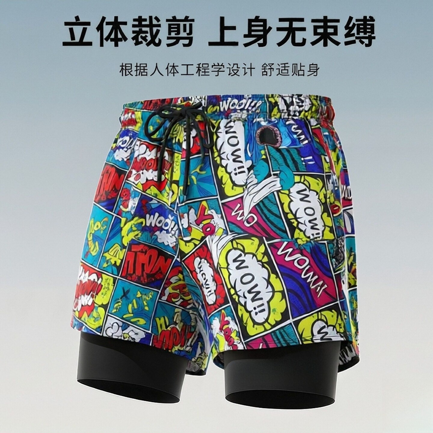 新款2026男士沙滩假两件双层速干防尴尬帅气青少年大码温泉游泳裤
