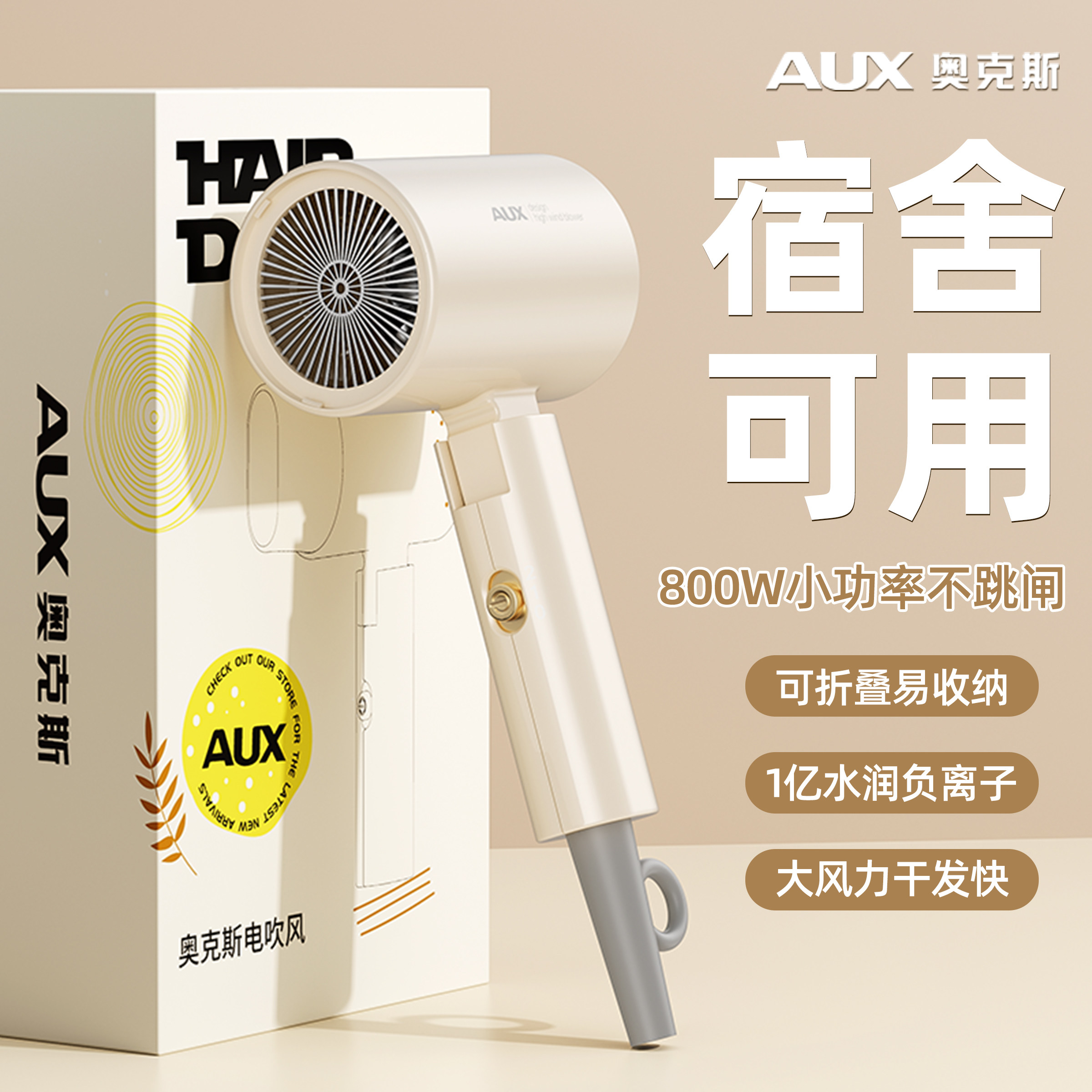 奥克斯吹风机宿舍用学生800w小功率负离子护发静音速干折叠便携电