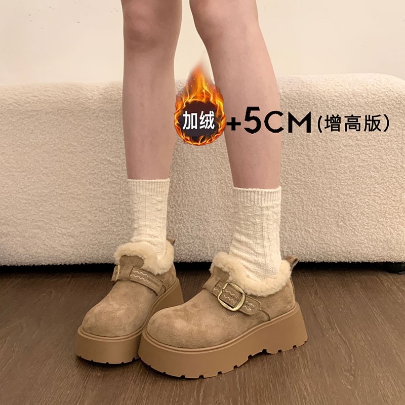 厚底加绒保暖勃肯鞋女鞋2025新款冬季雪地靴乐福鞋毛毛棉鞋防水