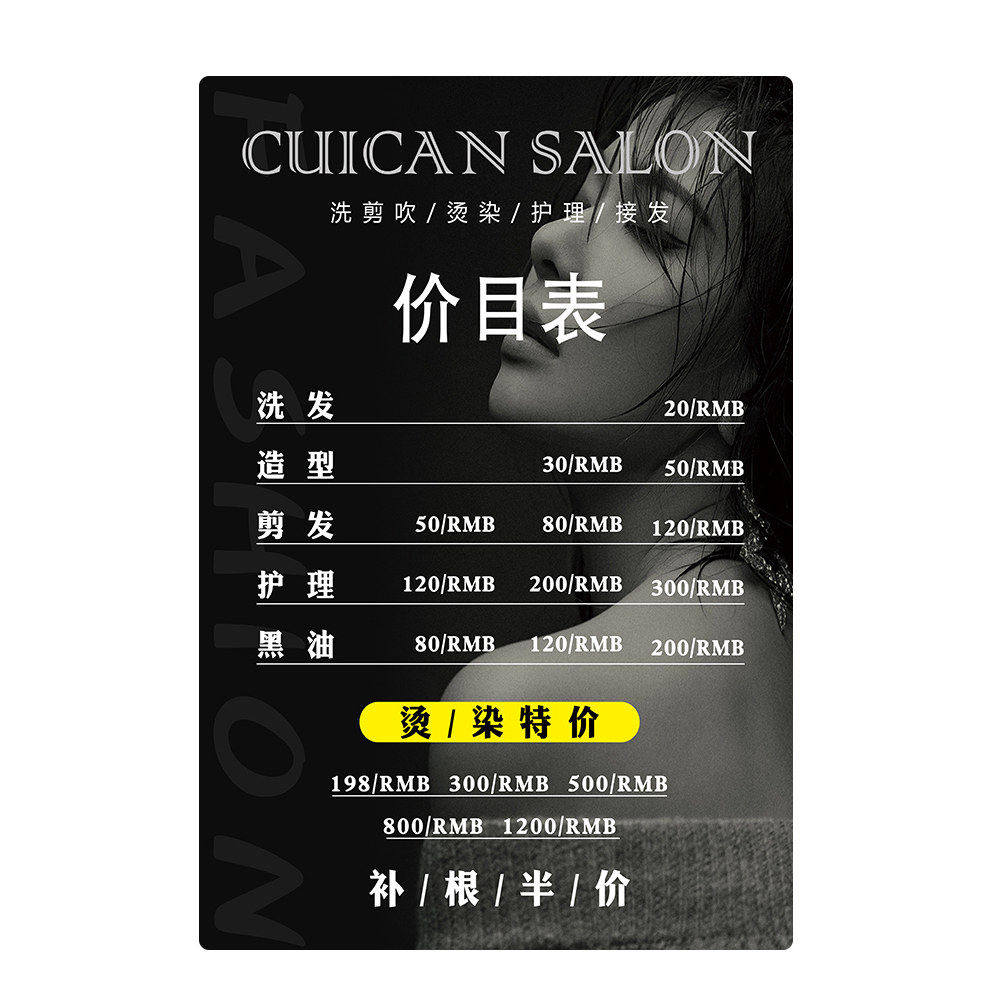 美发店价目表理发价目表设计定制发廊沙龙造型美业价格表亚克力创意高档墙贴美容院项目展示牌剪发价位表定制