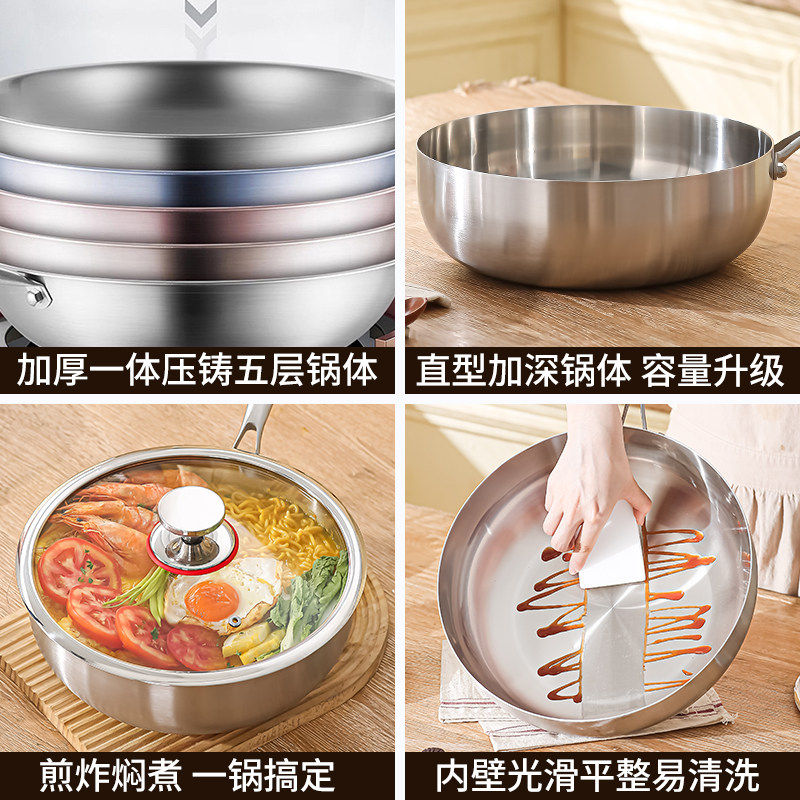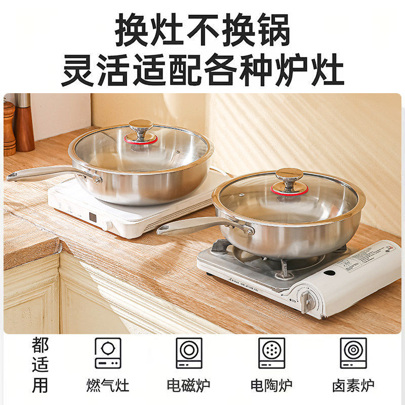 苏泊尔特厚食品级316不锈钢炒锅家用加深不沾锅电磁炉专用锅平a9