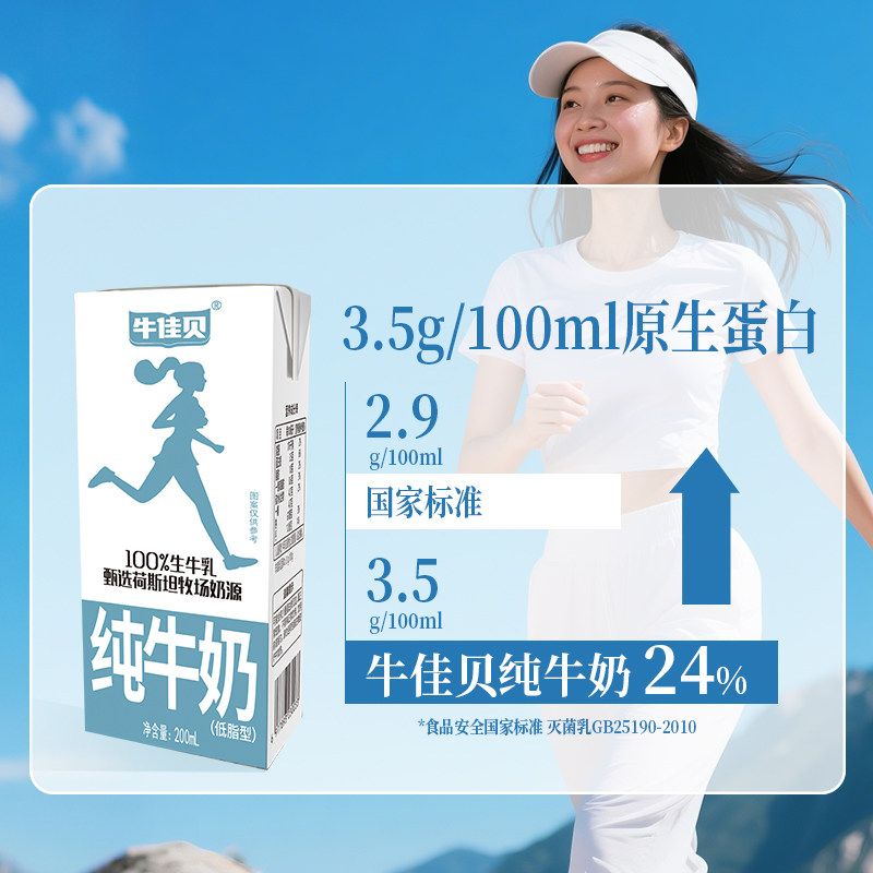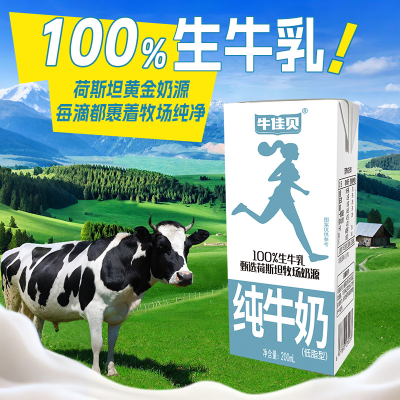 牛佳贝纯牛奶200ml*12盒整箱100%生牛乳7.0蛋白/盒低脂学生早餐奶