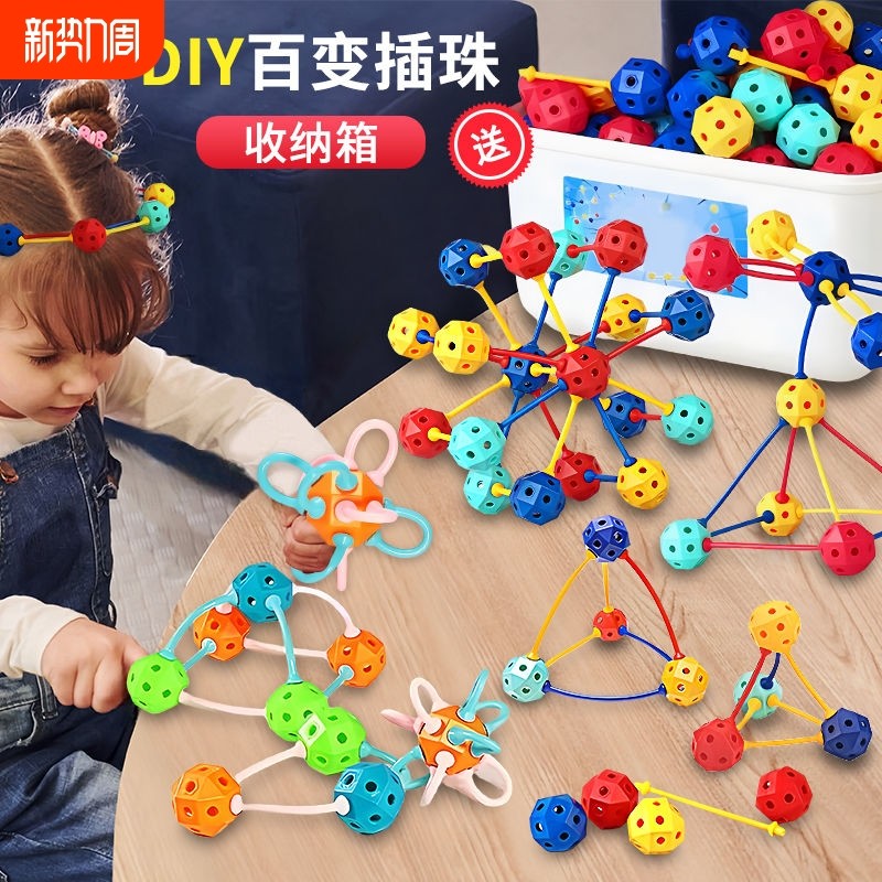 儿童益智3D百变插珠积木立体拼插拼装手工男女孩思维颗粒玩具几何
