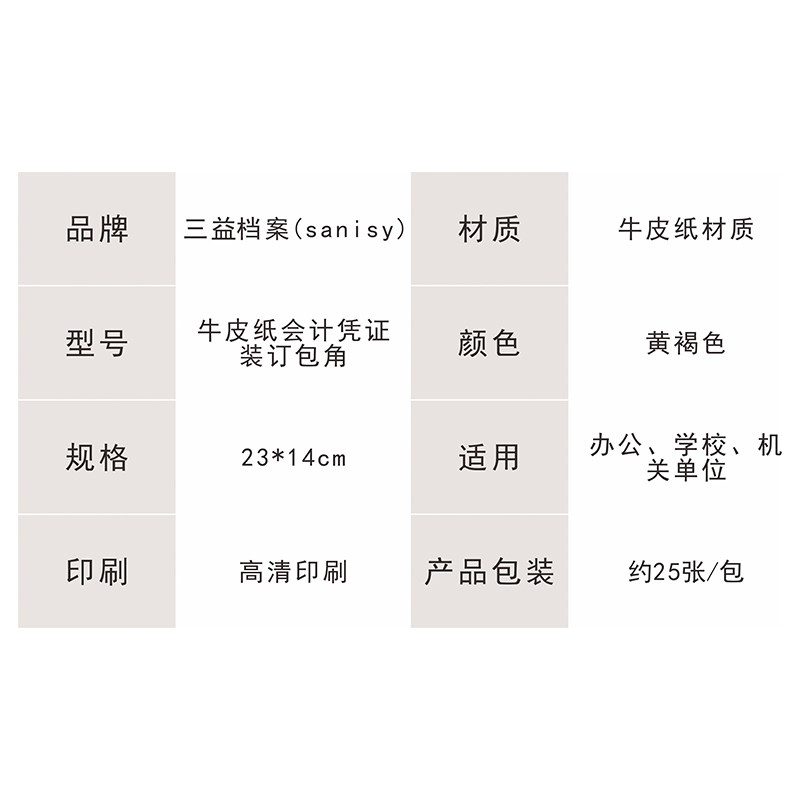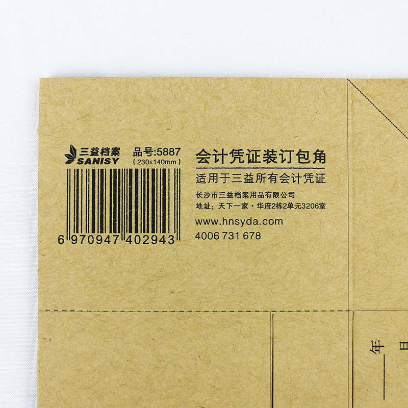 三益档案50张加厚会计记账凭证包角纸 牛皮纸凭证封面包角通用电脑凭证财务档案装订包角纸护角纸 封皮包脚纸
