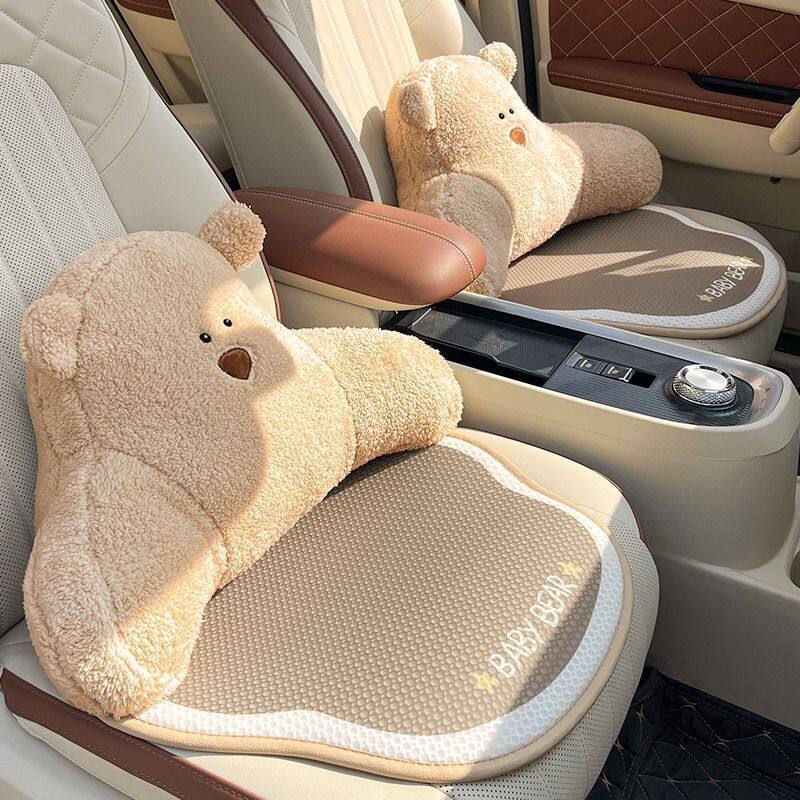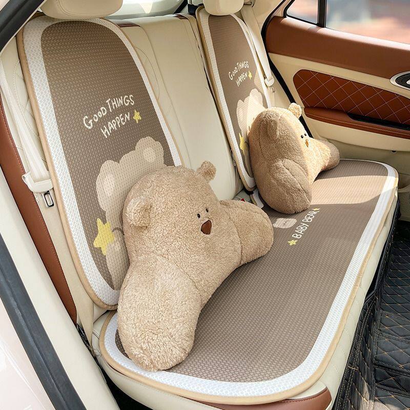 车内透气坐垫靠背汽车坐垫四季通用冰丝可爱卡通车用座垫防滑通风