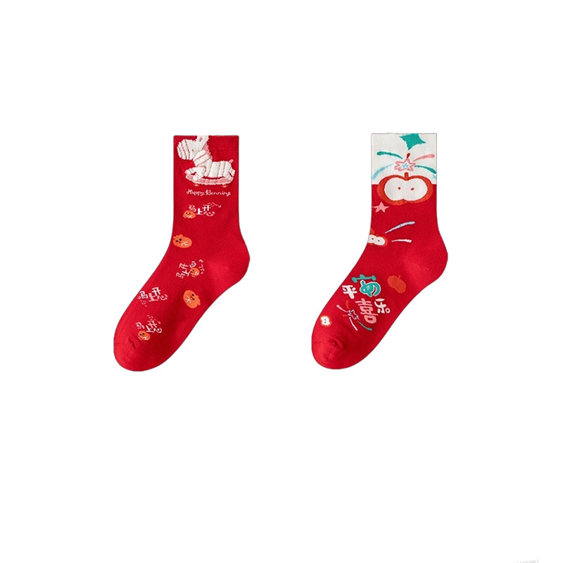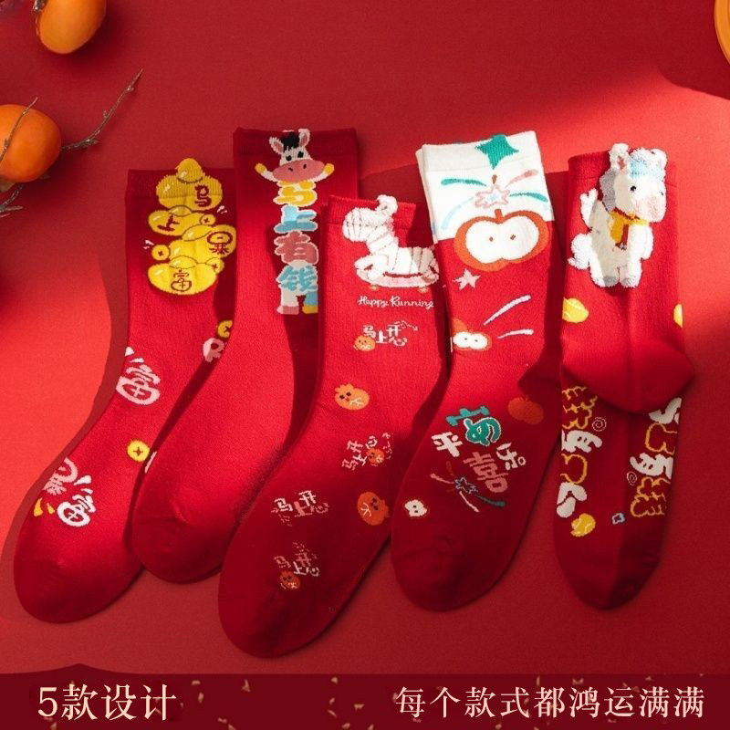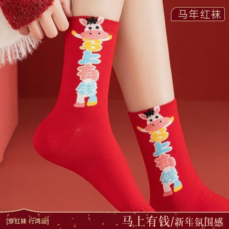 马年本命年红袜子女中筒大红色袜男2026属马新年礼物可爱秋冬长袜