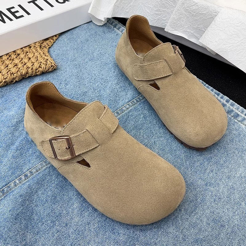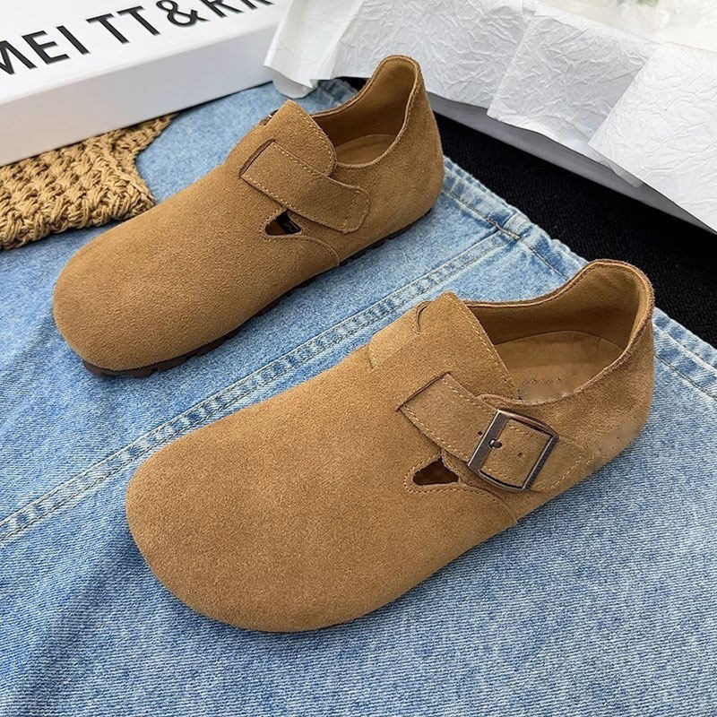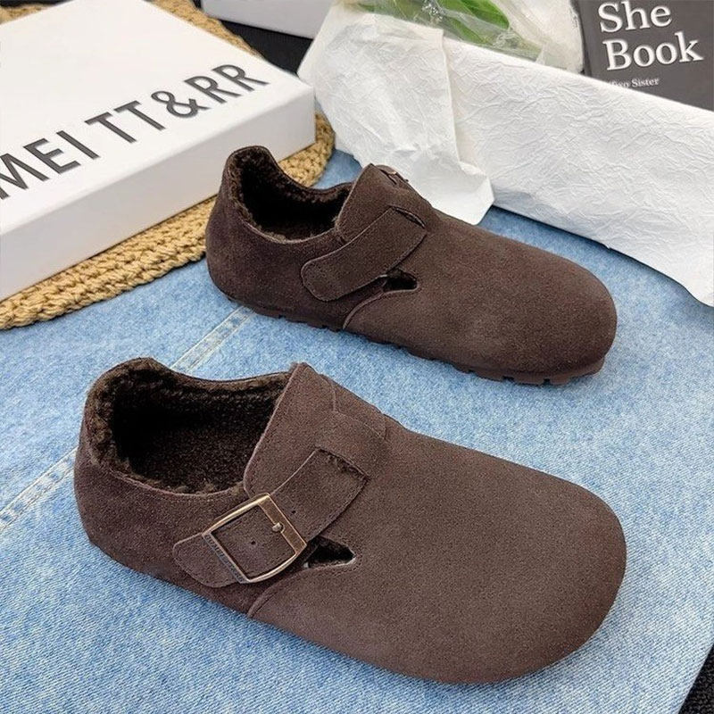 TATAFOCUS~加绒毛毛鞋韩版圆头皮带扣2025冬季新款勃肯鞋女35-28