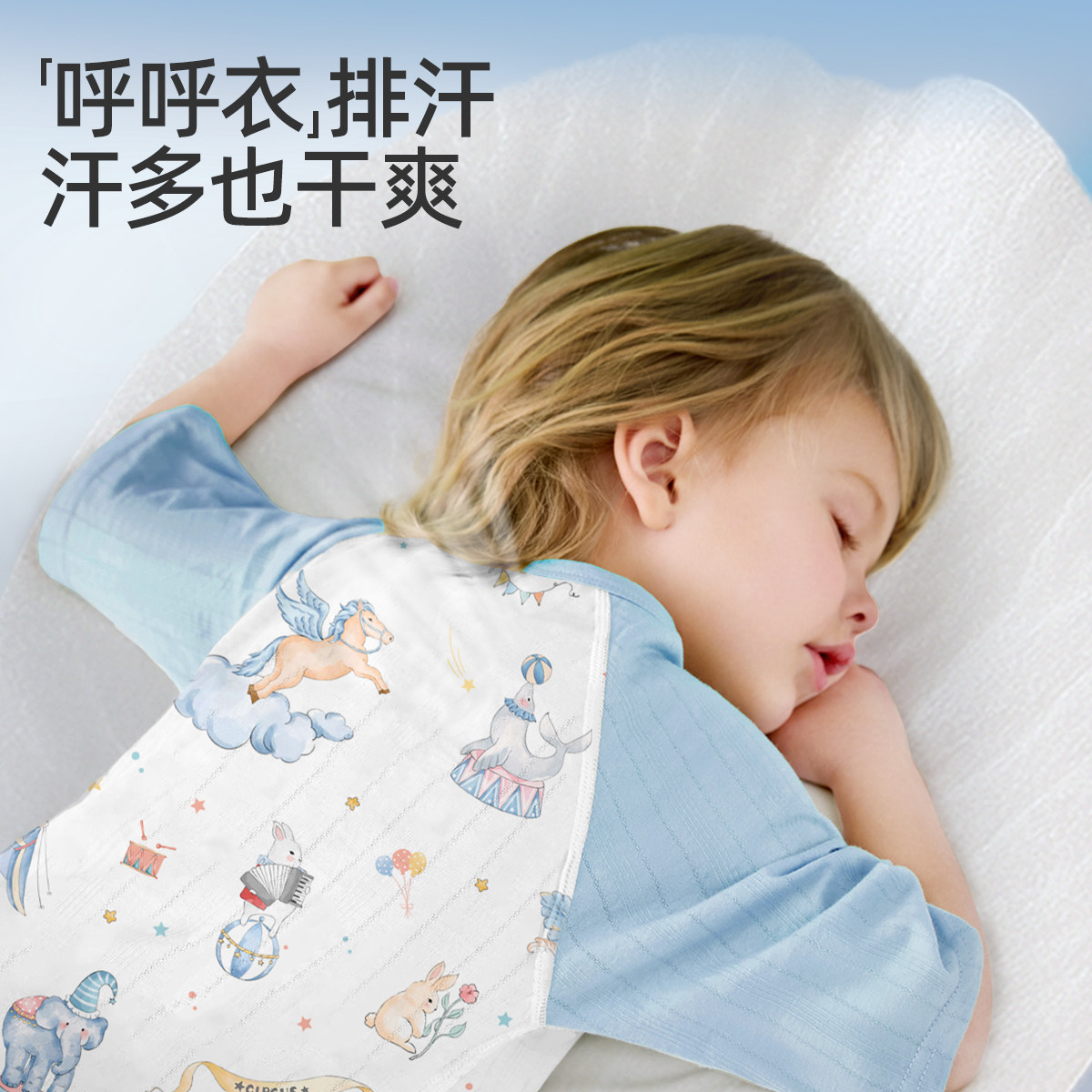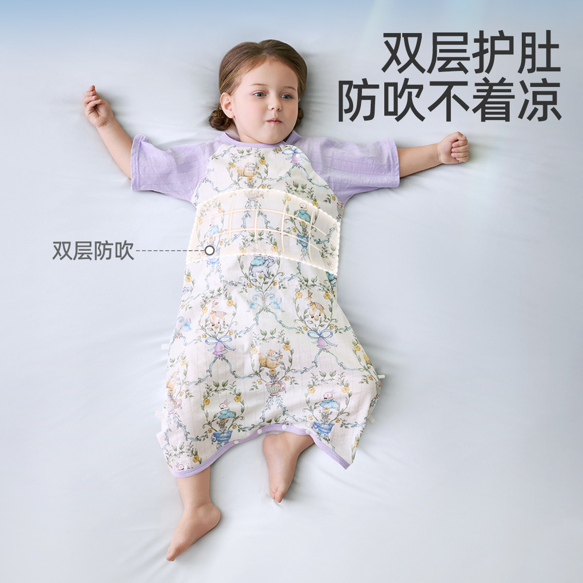 婧麒宝宝睡衣夏季薄款纯棉提花婴儿睡袍家居服护肚连体衣婴儿衣服