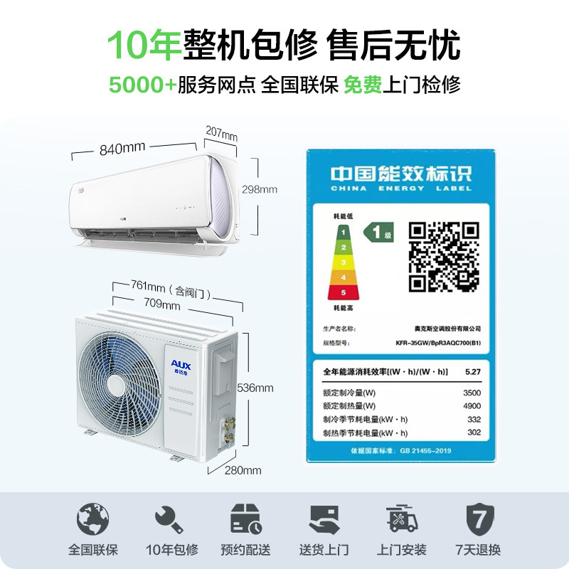 奥克斯奥知音空调一级能效大1.5匹挂机家用卧室沁音新品官方店