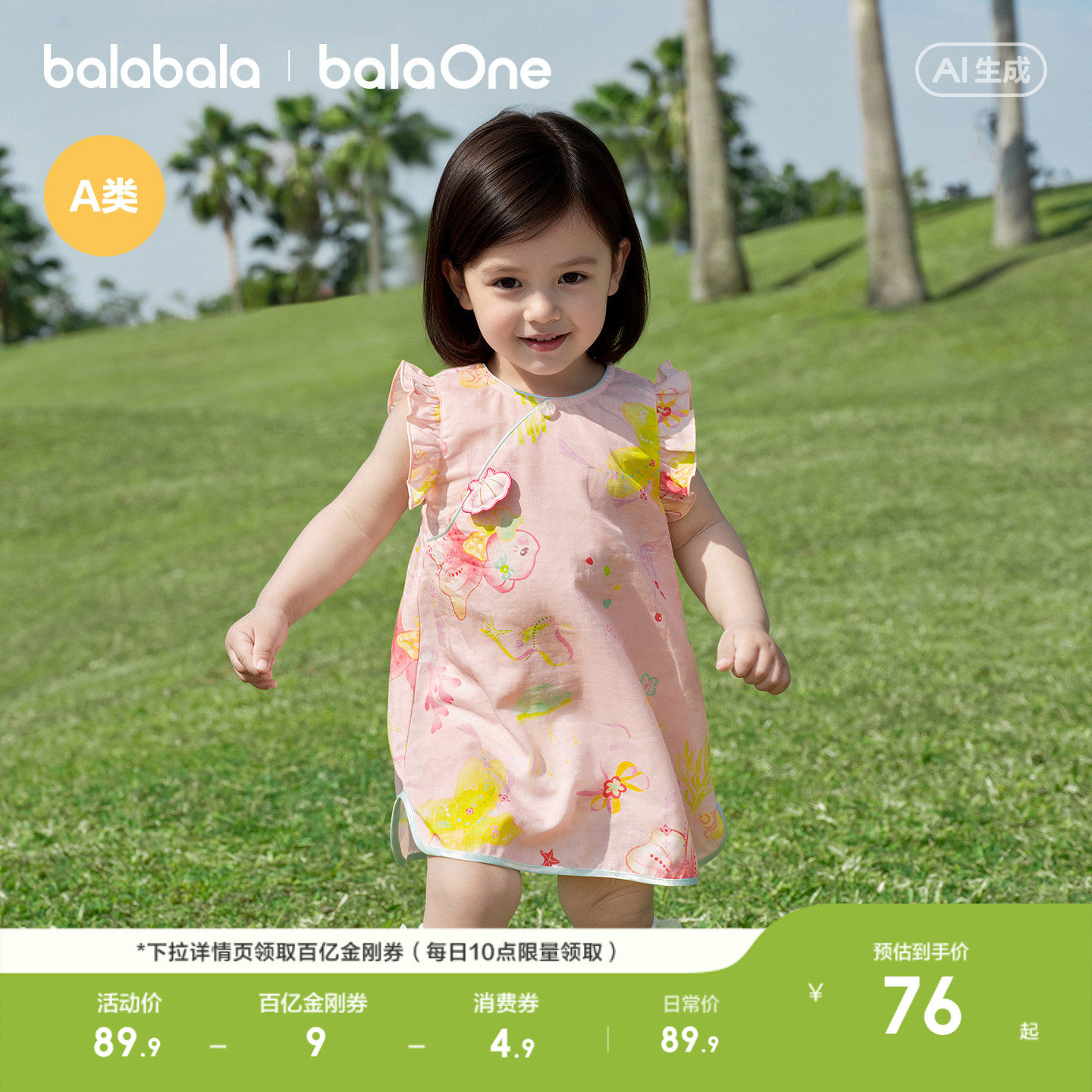 巴拉巴拉宝宝公主裙女童连衣裙2026新款夏季国风复古甜美可爱裙子