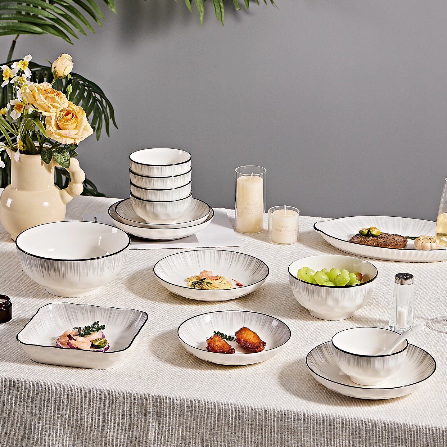酒店摆台餐具四件套套装陶瓷碗碟盘勺饭店餐厅会所火锅店骨碟商用