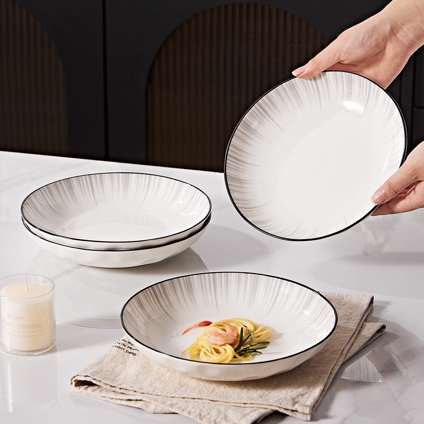 创意ins风高级感荷叶边陶瓷盘意面盘深盘西餐盘水果沙拉碗酸奶碗