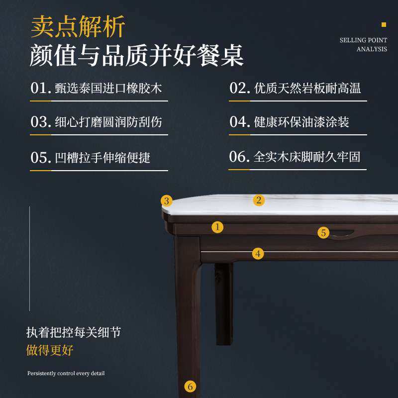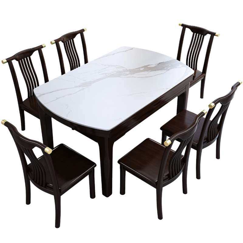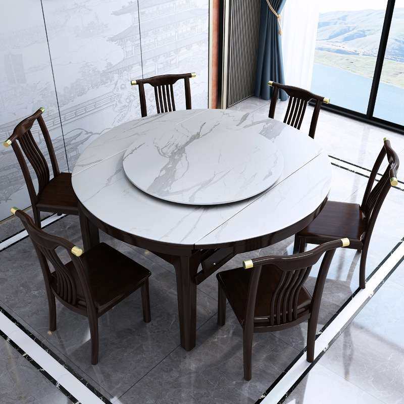 新中式全实木餐桌椅组合轻奢家用岩板方桌伸缩折叠现代大理石圆桌