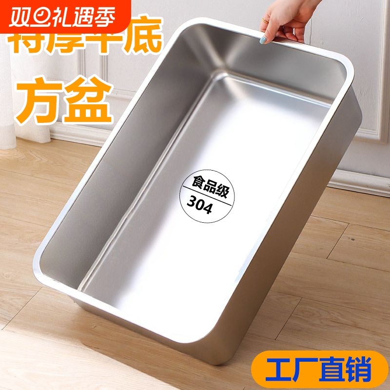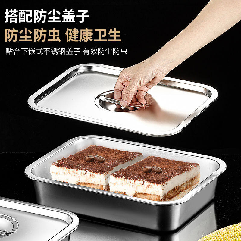 不锈钢方盆长方形方盘份数盆加深托盘菜盆带盖方盒食品级盖子厨房