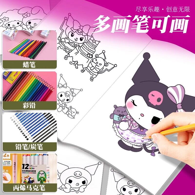 库洛米画画本图画本描摹本涂鸦涂色手绘玉桂狗临摹本小学生卡通动漫线稿幼儿园基础简笔入门儿童画册不透色