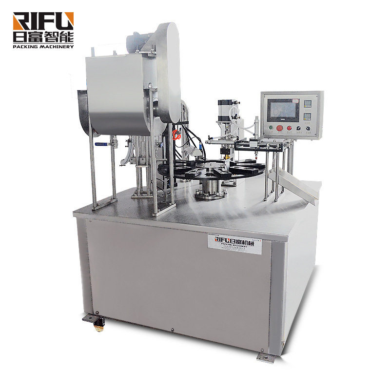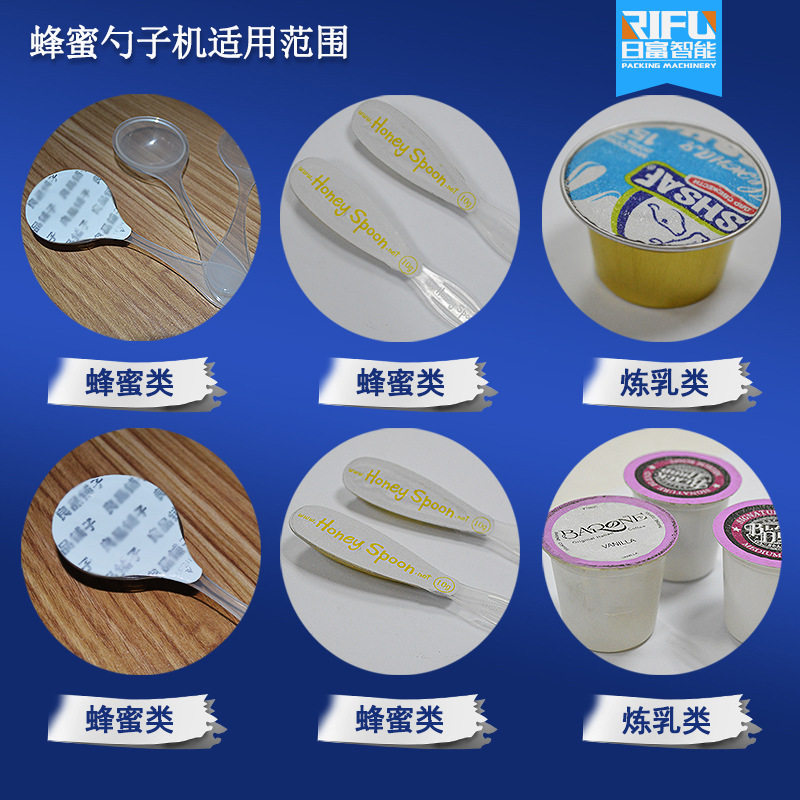 酸奶炼乳杯灌装机 自动勺子封口设备 蜂蜜勺子旋转式灌装封口机