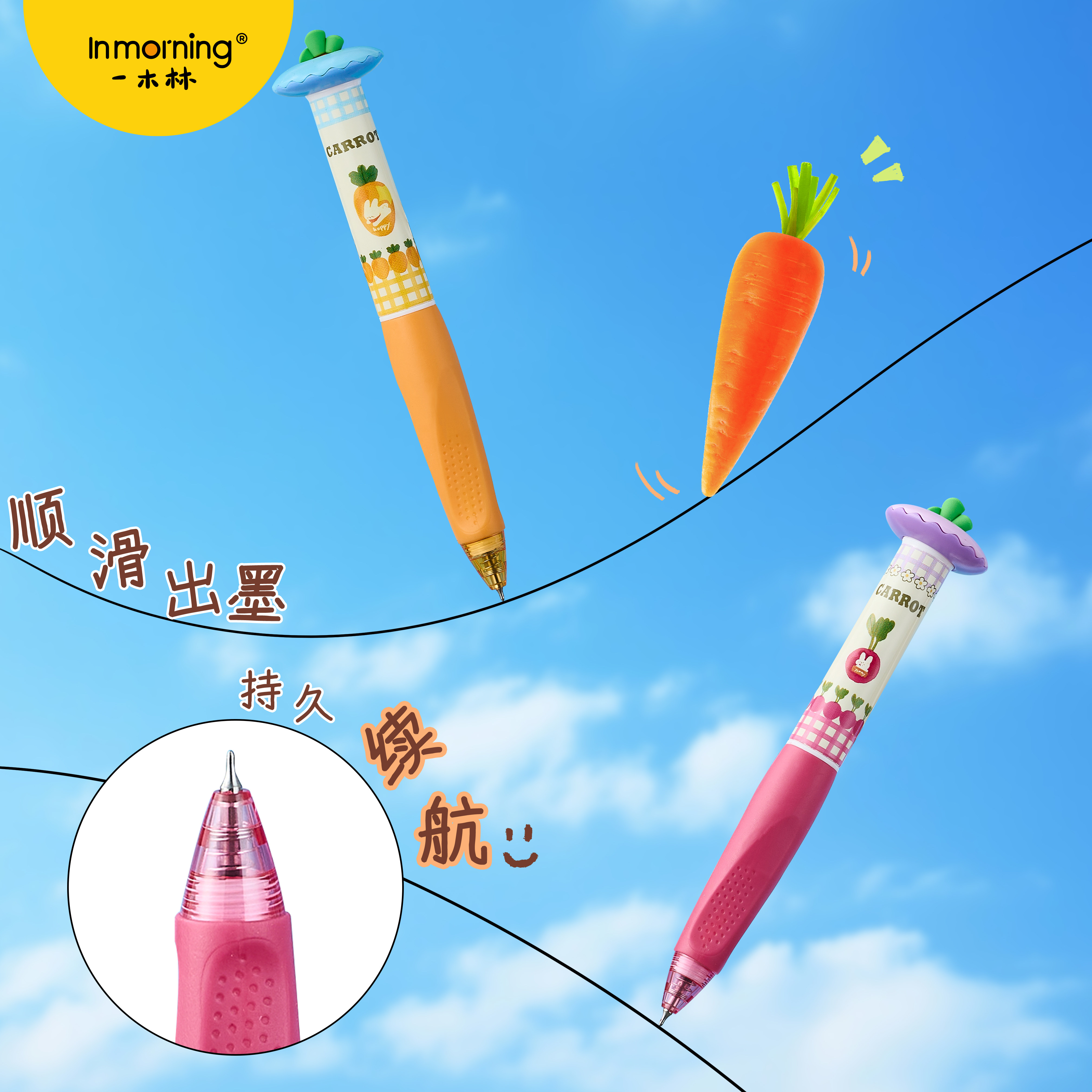 一木林萝卜旋转扭扭中性笔旋转出芯解压CS双珠速干刷题笔高颜值创意黑色水性笔国风熊猫可爱签字笔学生用笔