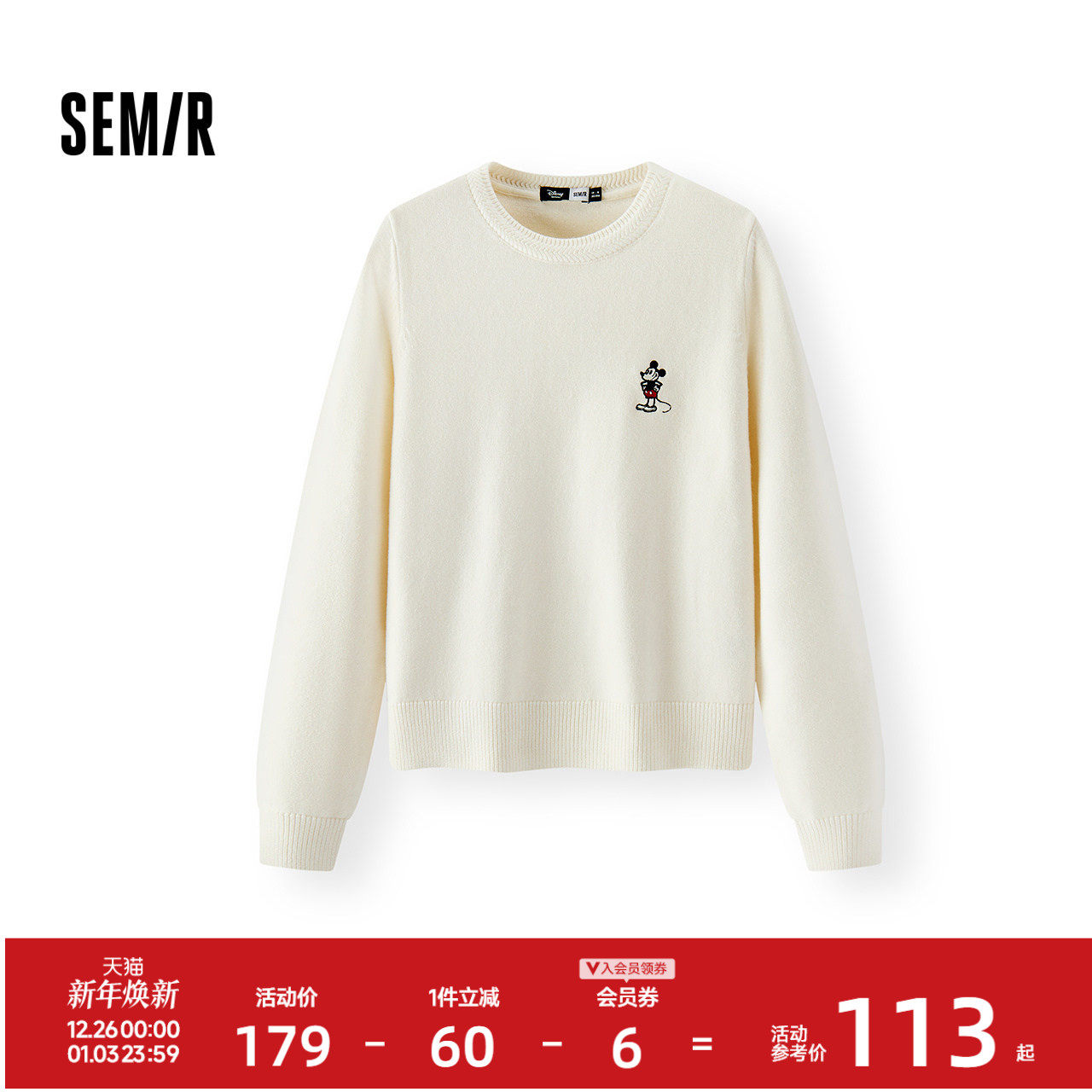 森马迪士尼合作系列毛衣女春季提花圆领绣花气质温柔女士百搭上衣