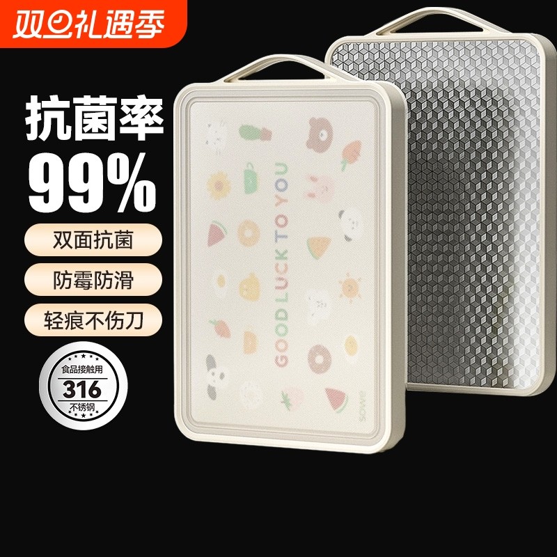 菜板抗菌防霉家用不锈钢双面案板厨房加厚砧板粘板水果占板切菜板