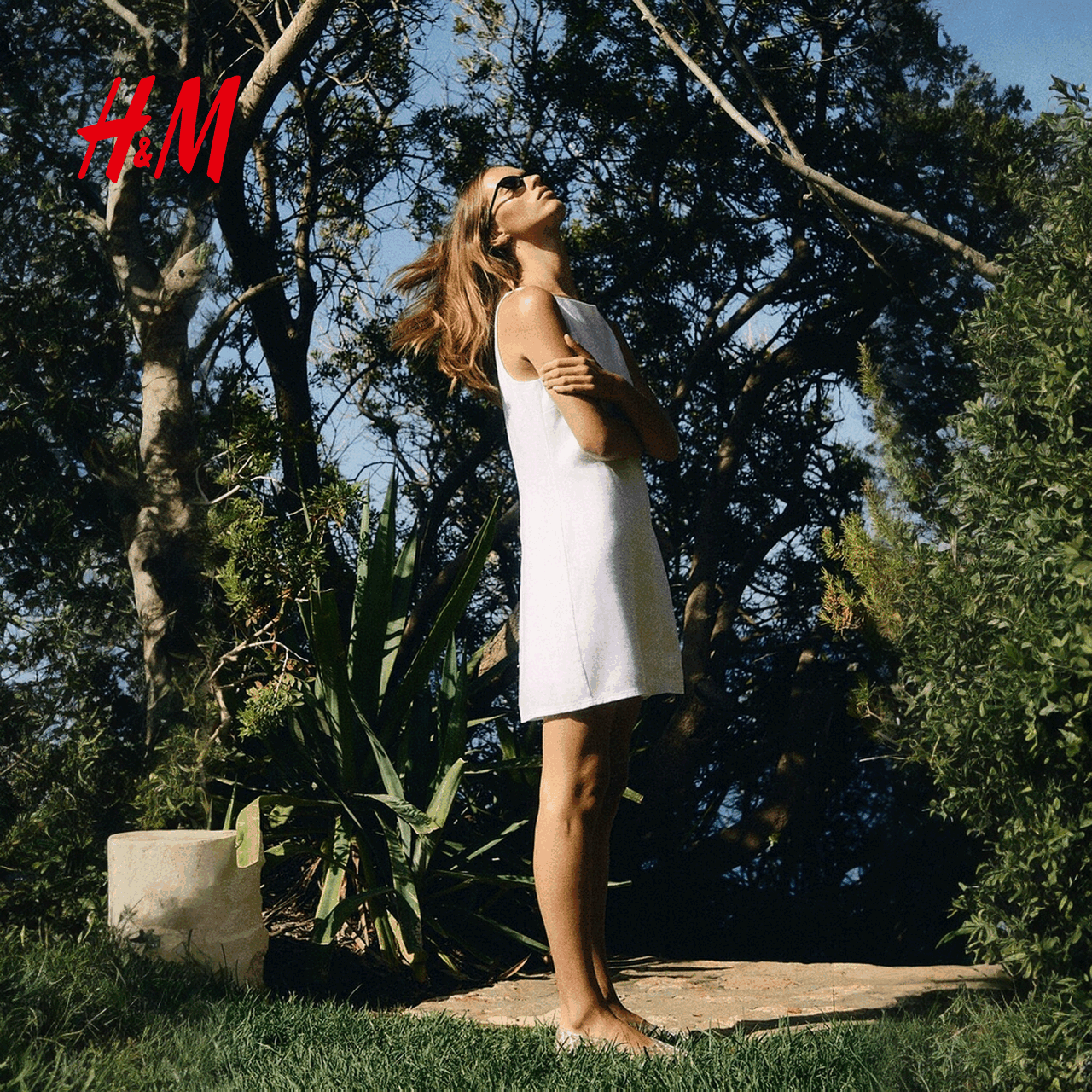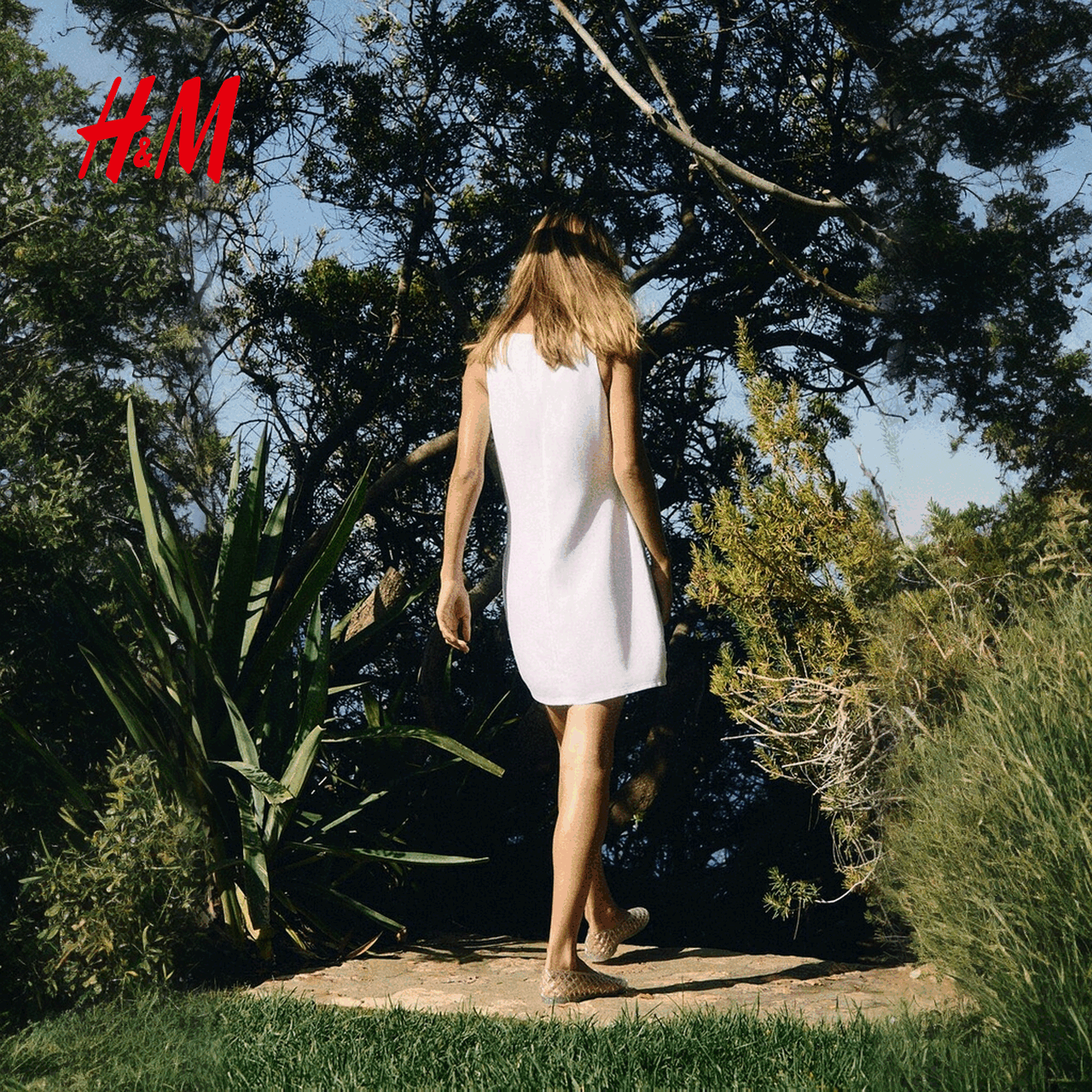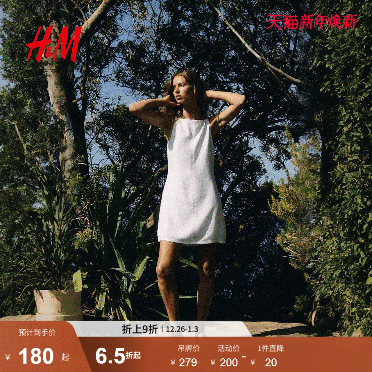 HM女装度假吊带连衣裙2025冬季新款亚麻混纺休闲连身裙1293984