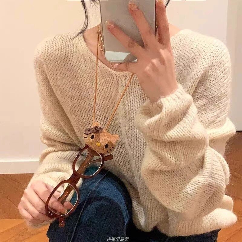 可爱KT猫咪眼镜收纳挂绳小众百搭毛衣链简约墨镜链条甜美少女项链