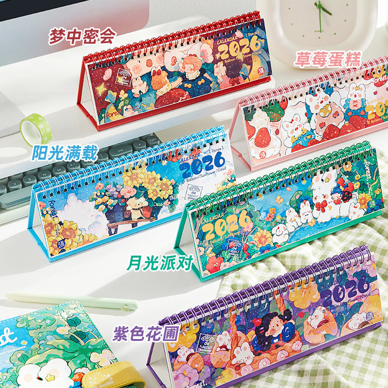 季左2026年韩式台历日历马年新款定制订制小卡月历桌面摆件网红卡通高颜值办公台历卡通可爱