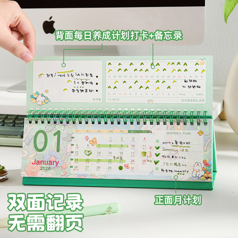 台历2026年创意简约商务办公月历定制桌面摆件新款马年工作打卡日历本计划本ins风考研日历2025年记事台历本