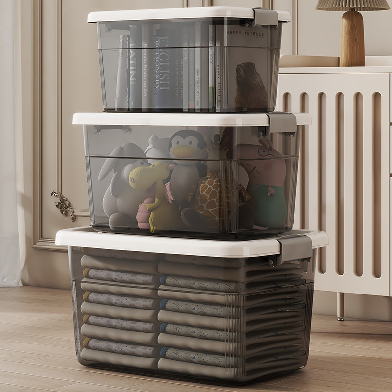 透明黑收纳箱加厚大容量家用储物整理盒装衣服衣物玩具塑料箱子