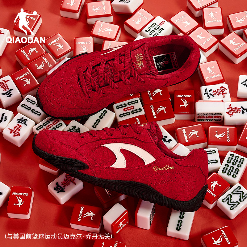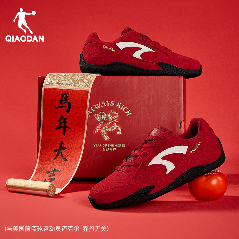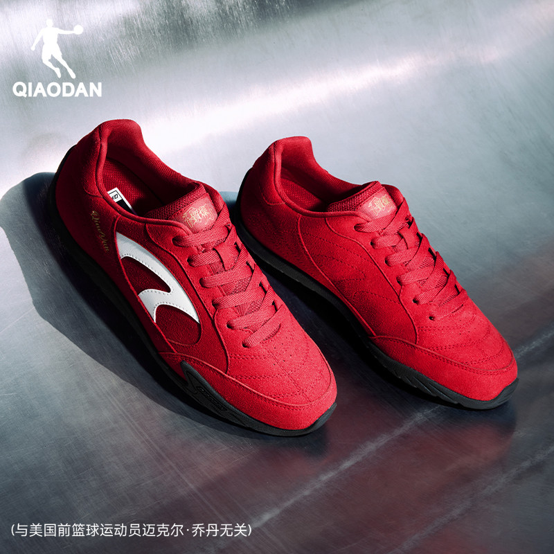 乔丹男鞋薄饼鞋男士薄底运动鞋2026新年款红色休闲鞋反绒皮德训鞋