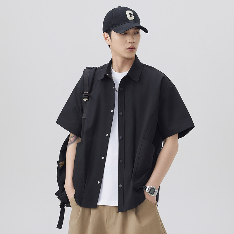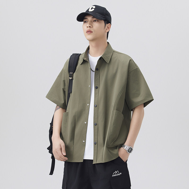 回力男士冰丝工装短袖衬衫夏季美式翻领半袖上衣服休闲衬衣外套潮