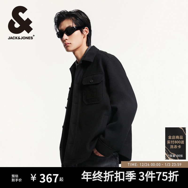 杰克琼斯男装行政夹克男士春秋季2025年潮翻领上衣短款仿毛呢外套