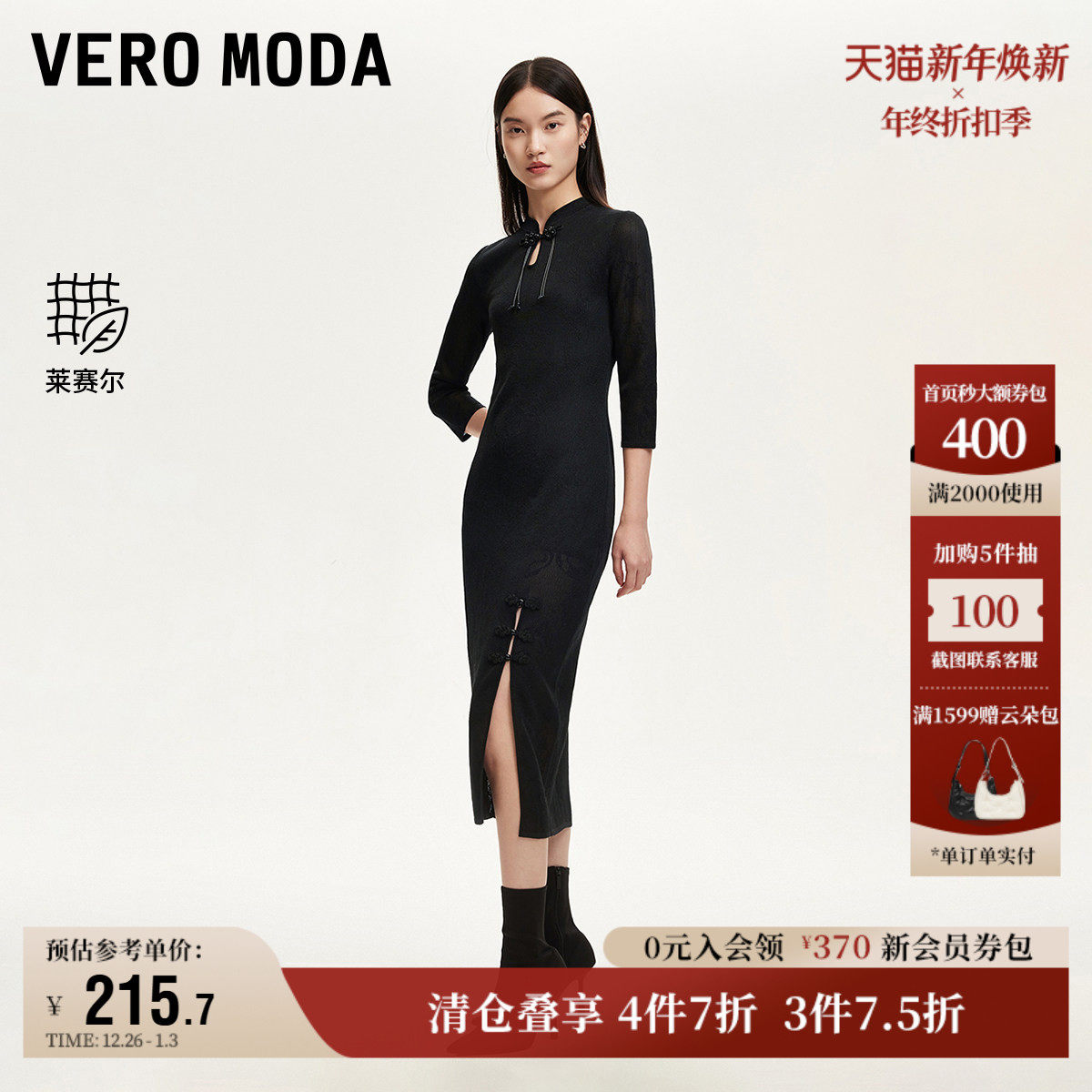 Vero Moda奥莱连衣裙秋冬新款新中式压花盘扣旗袍优雅修身流行