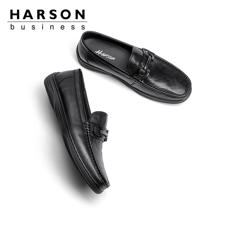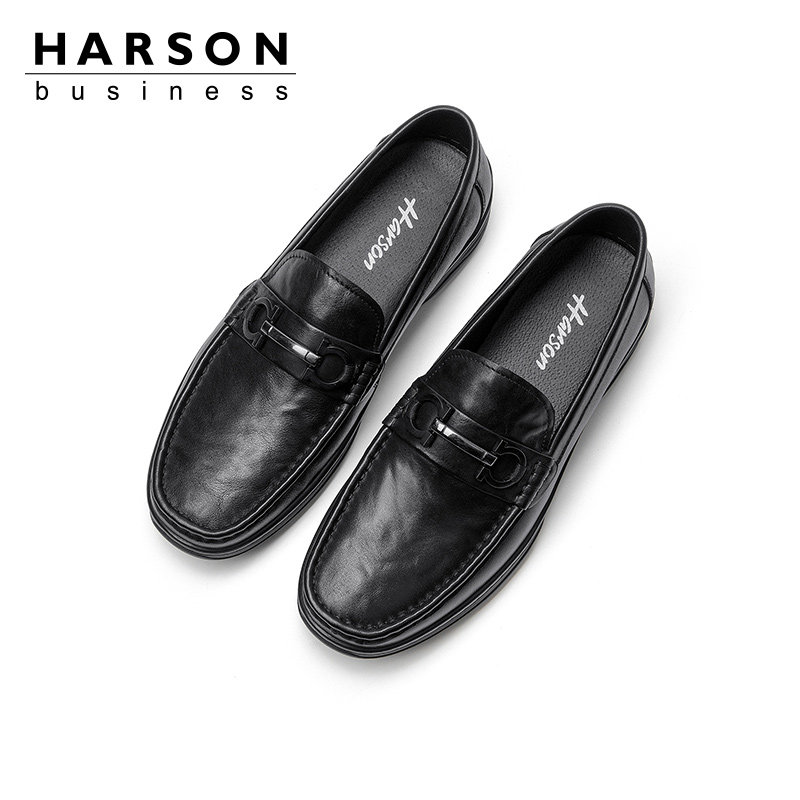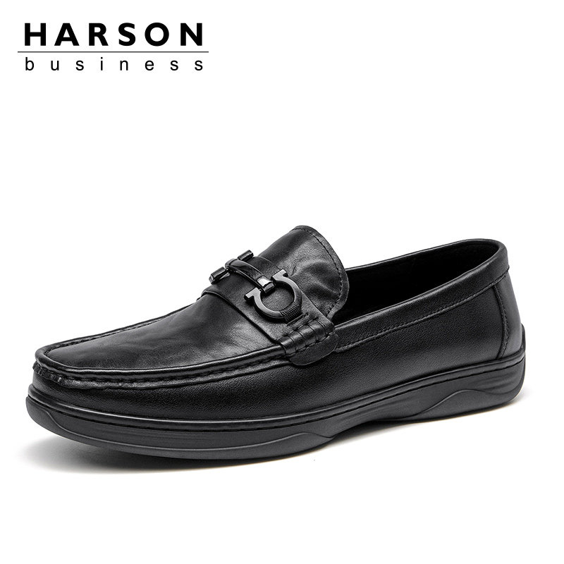 哈森男鞋秋冬新款商务休闲皮鞋男士真皮豆豆鞋一脚蹬乐福鞋男软底