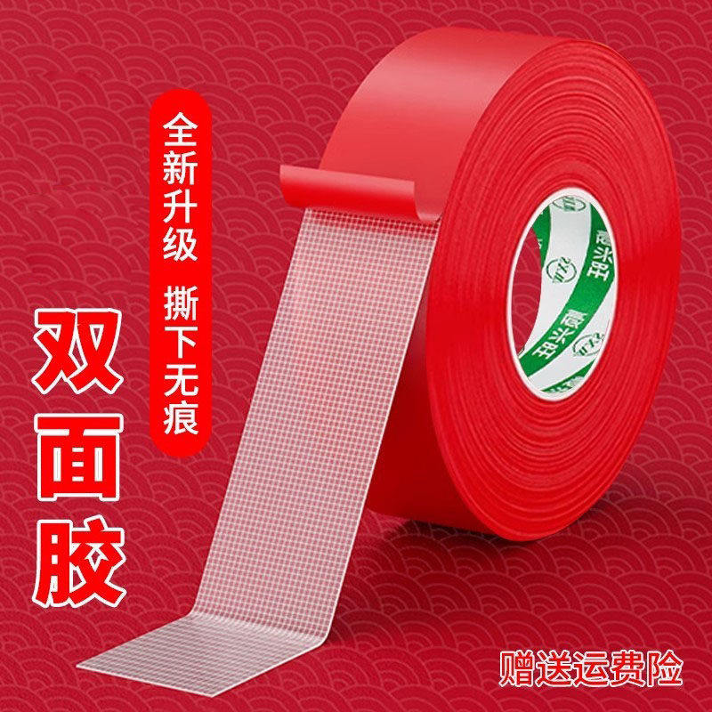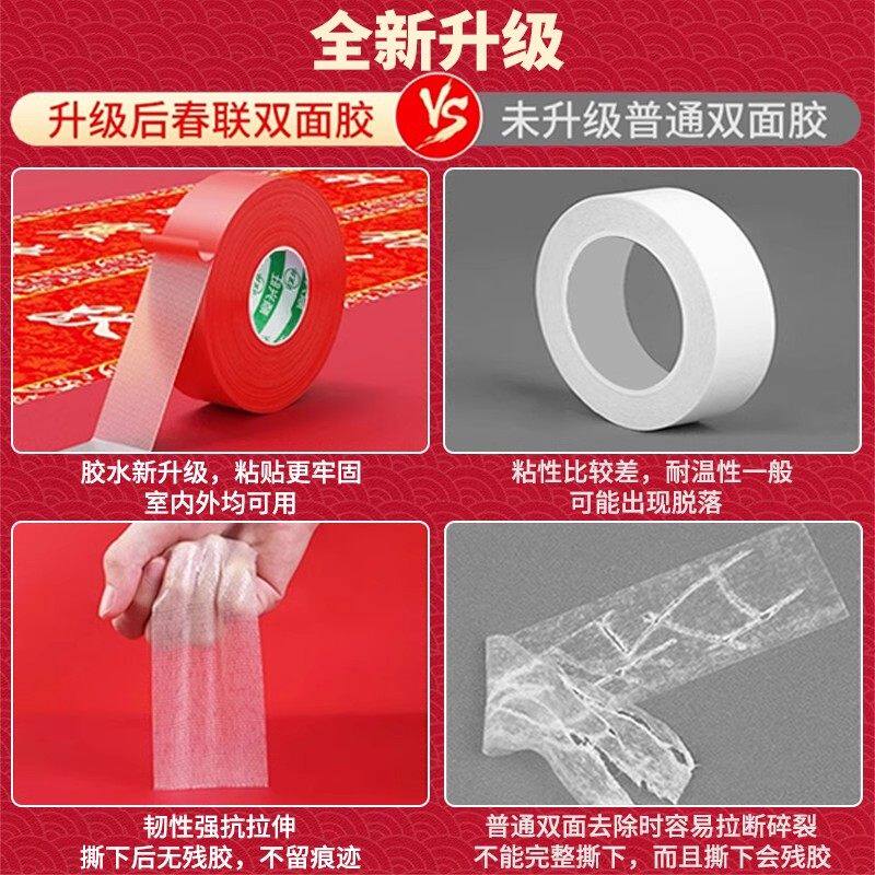 贴春联无痕双面胶对联专用胶带不留痕多功能红色布基胶布高粘度强
