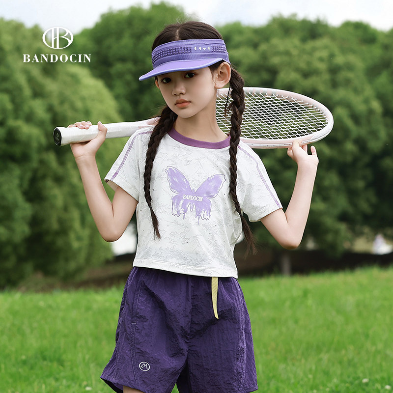 亲子女童速干衣夏季薄款短袖t恤洋气2025新款儿童夏装运动上衣潮T