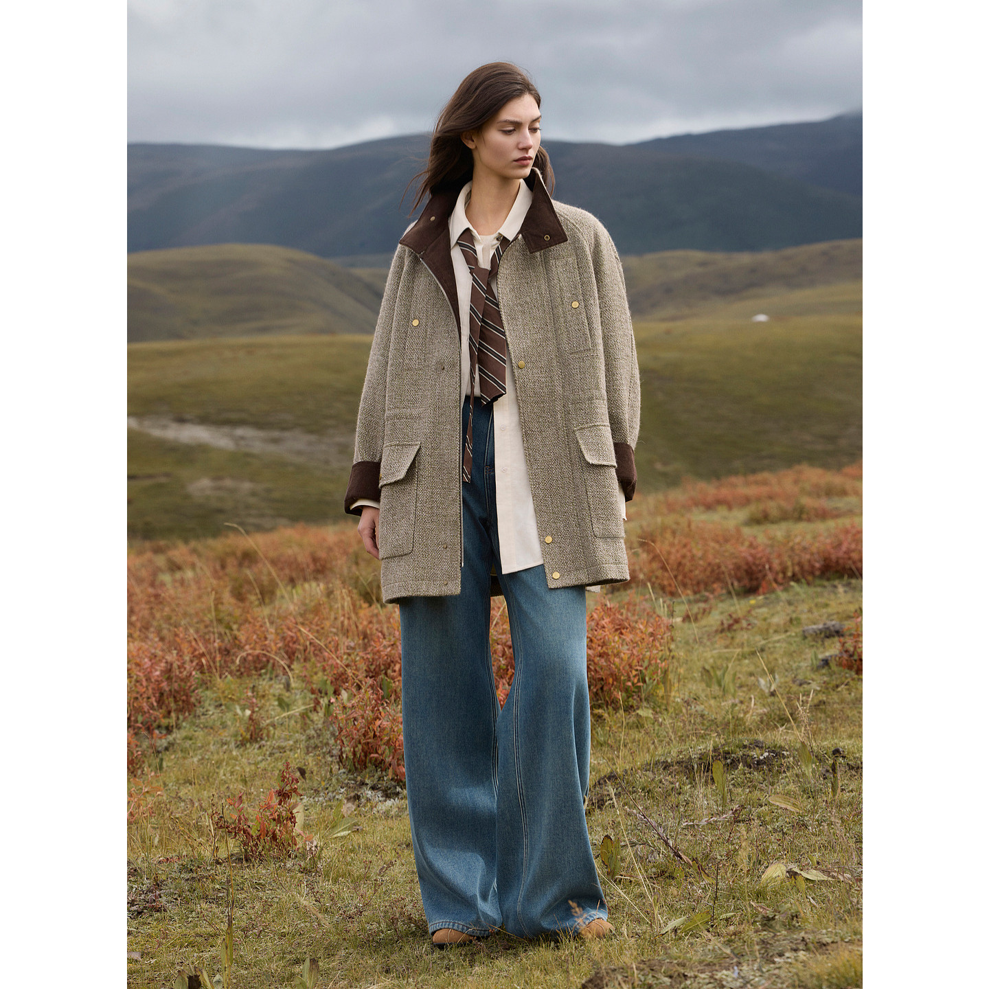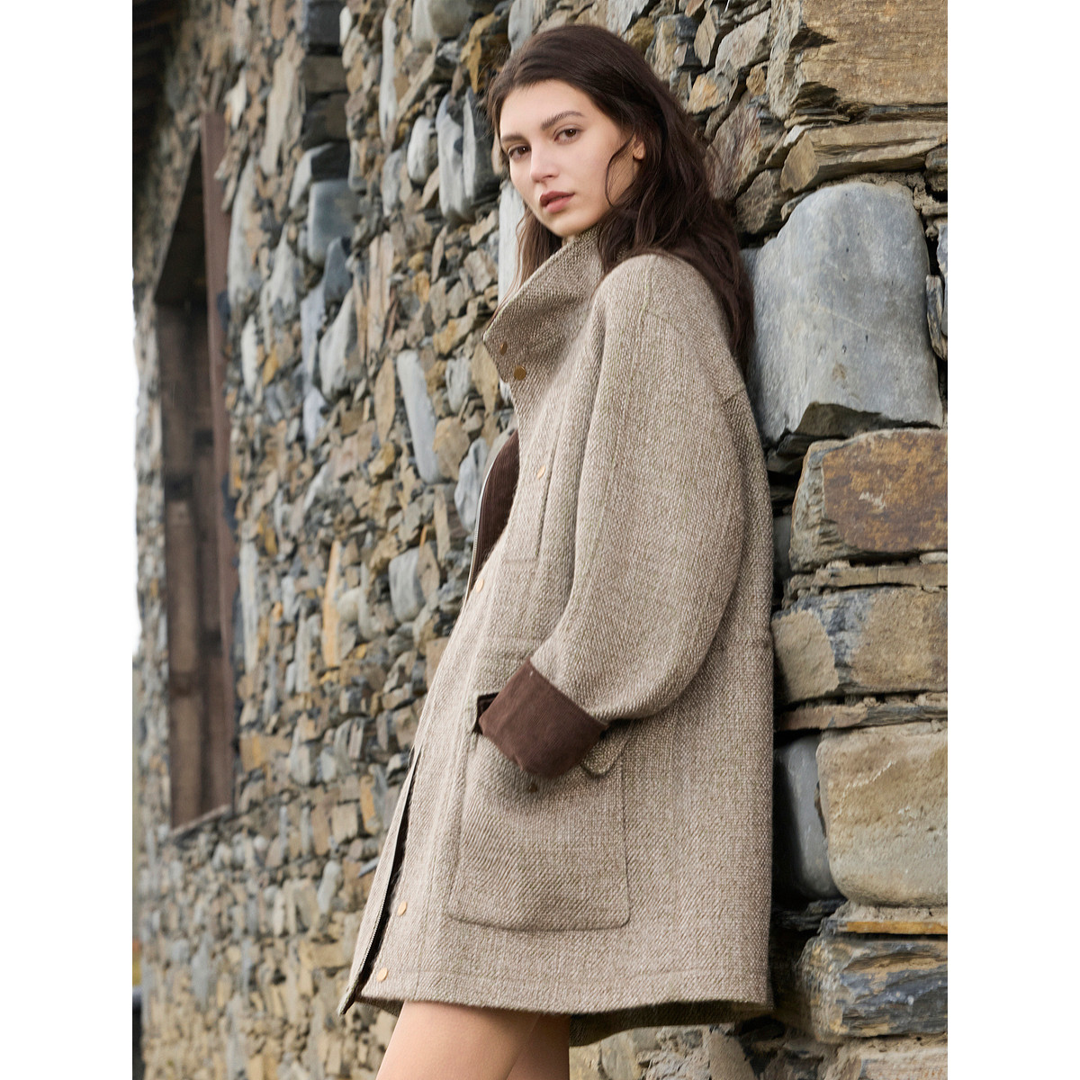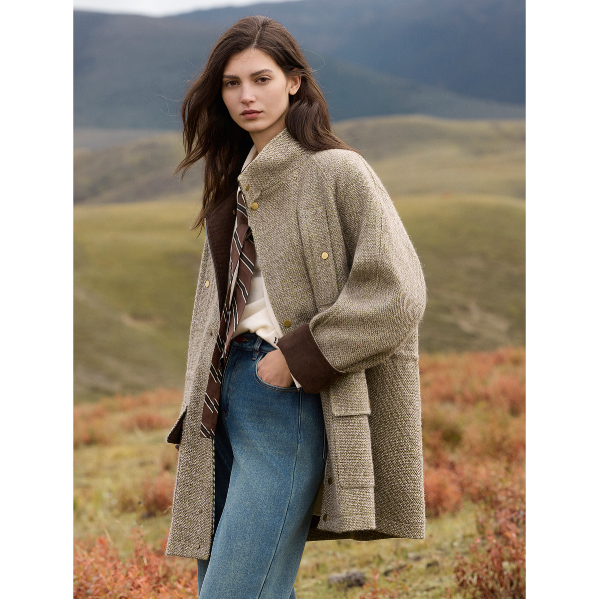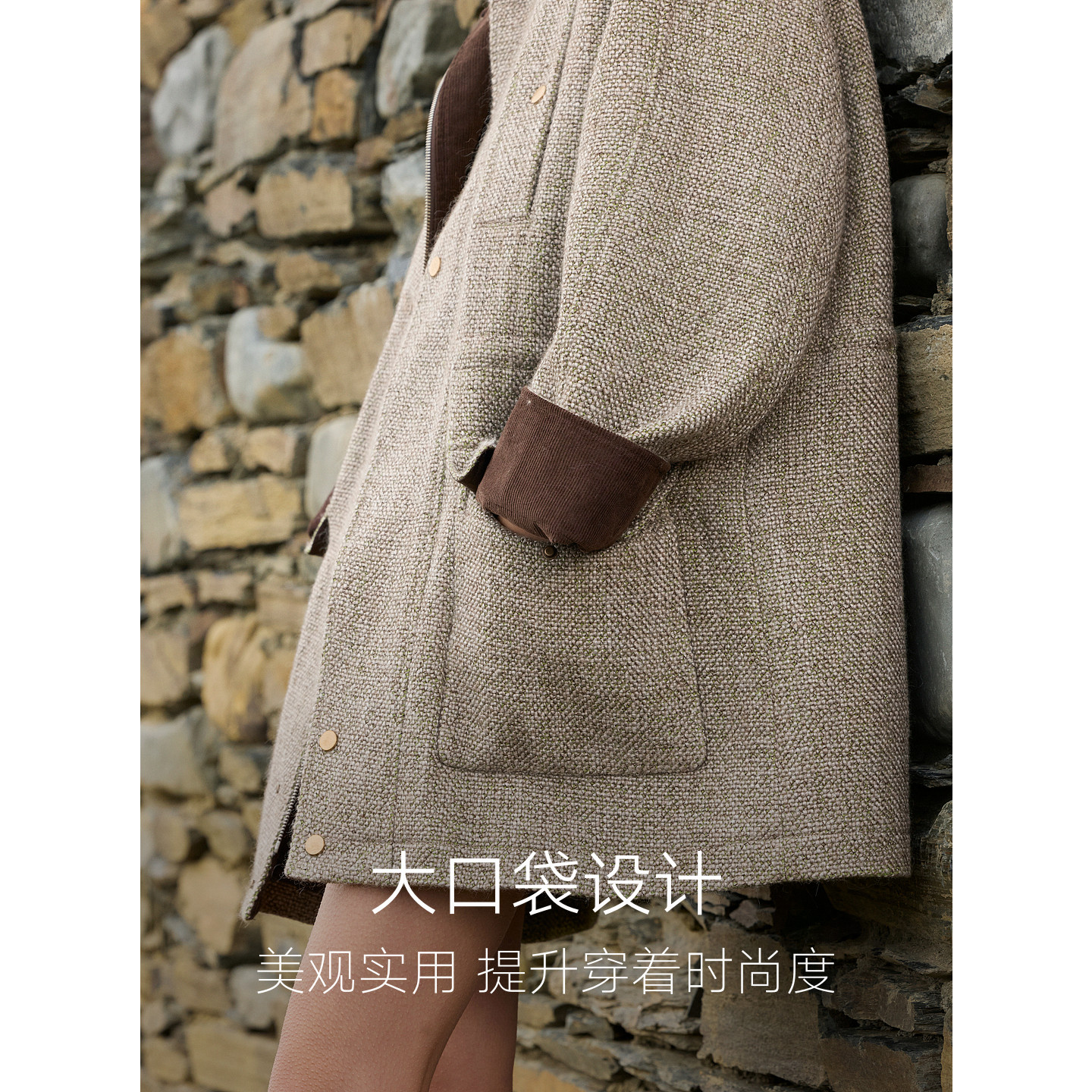 ELLE法式老钱风绵羊毛短外套女2025冬季新款高级感宽松廓形上衣