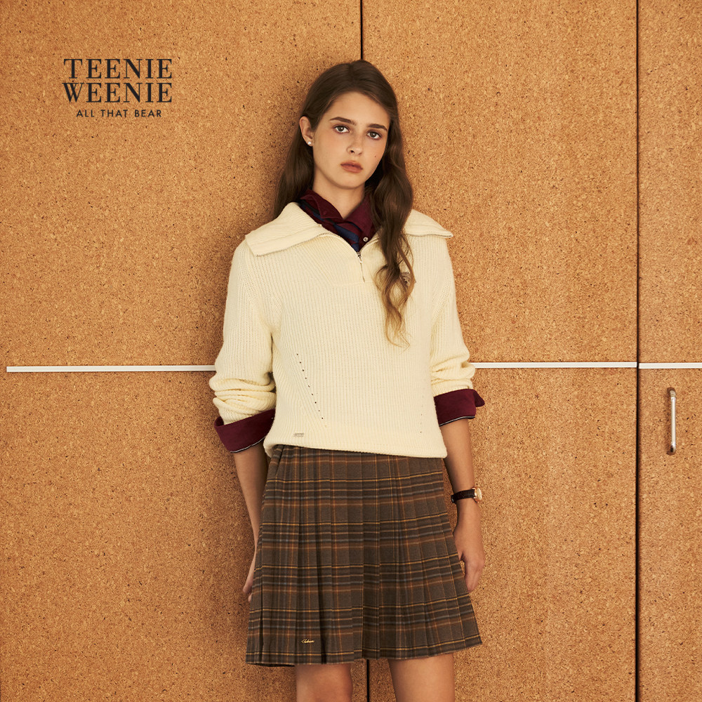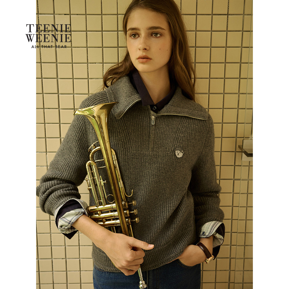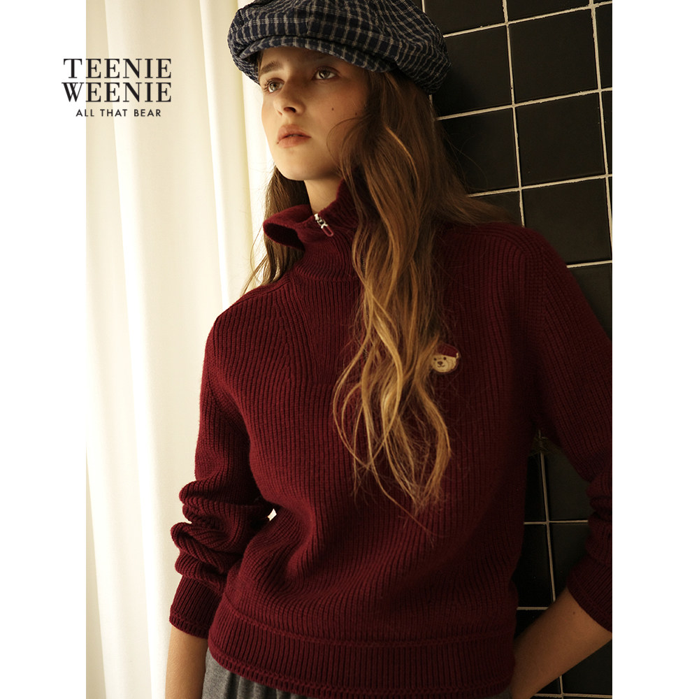 TeenieWeenie小熊女装毛针织衫秋冬款保暖时髦款半拉链毛衣上衣