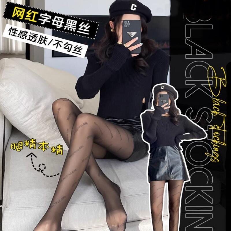 0D黑色丝袜超薄款夏季纯欲风裸感光腿神器显瘦字母黑丝渔网连裤袜