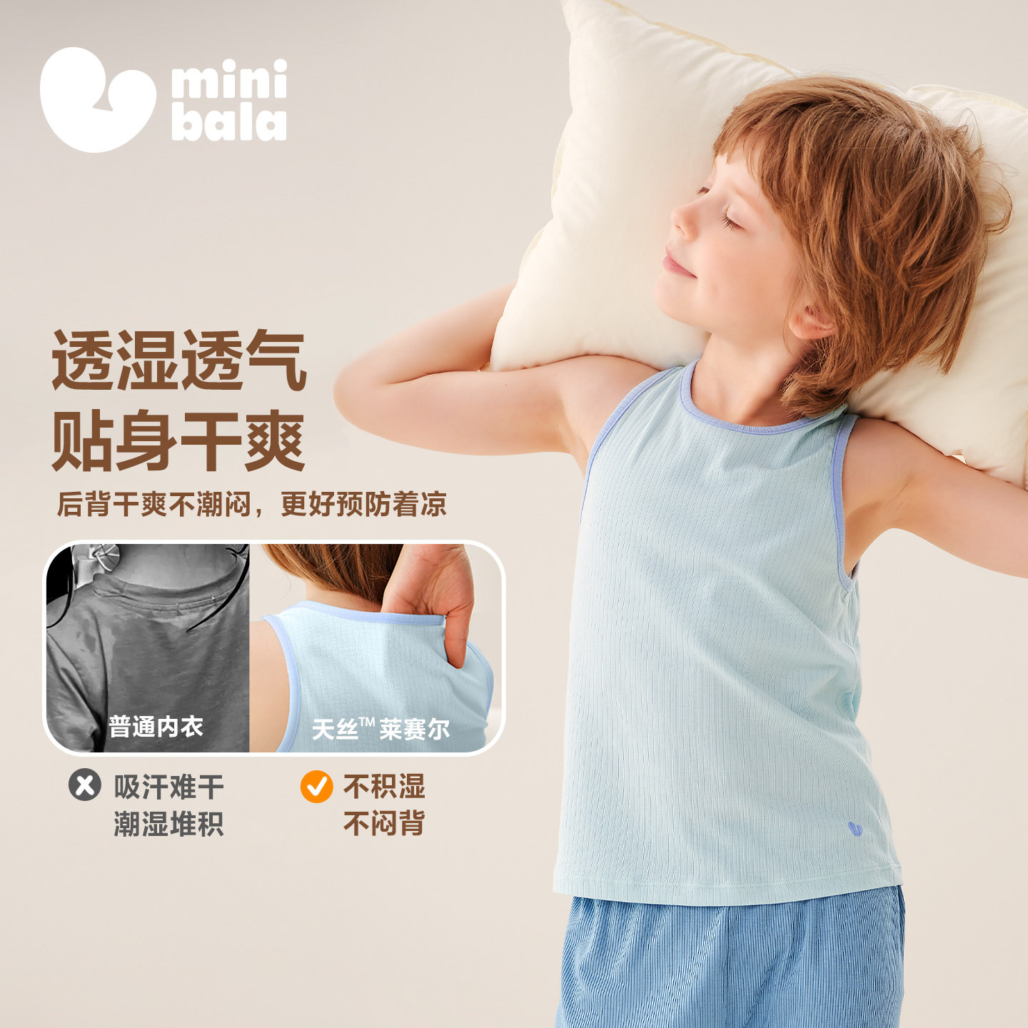 迷你巴拉【润养·洋甘菊植萃】儿童背心男女童宝宝无袖打底衣透气