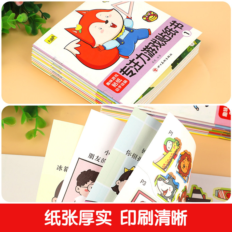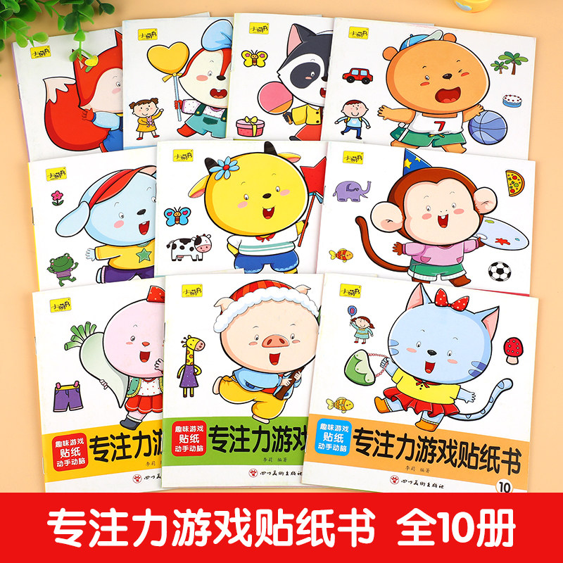 专注力游戏贴纸书全套10册 儿童益智全脑逻辑思维游戏训练 幼儿园书籍 宝宝贴贴画1-2-3-5岁粘贴纸早教绘本 0到3岁到6岁启蒙认知书