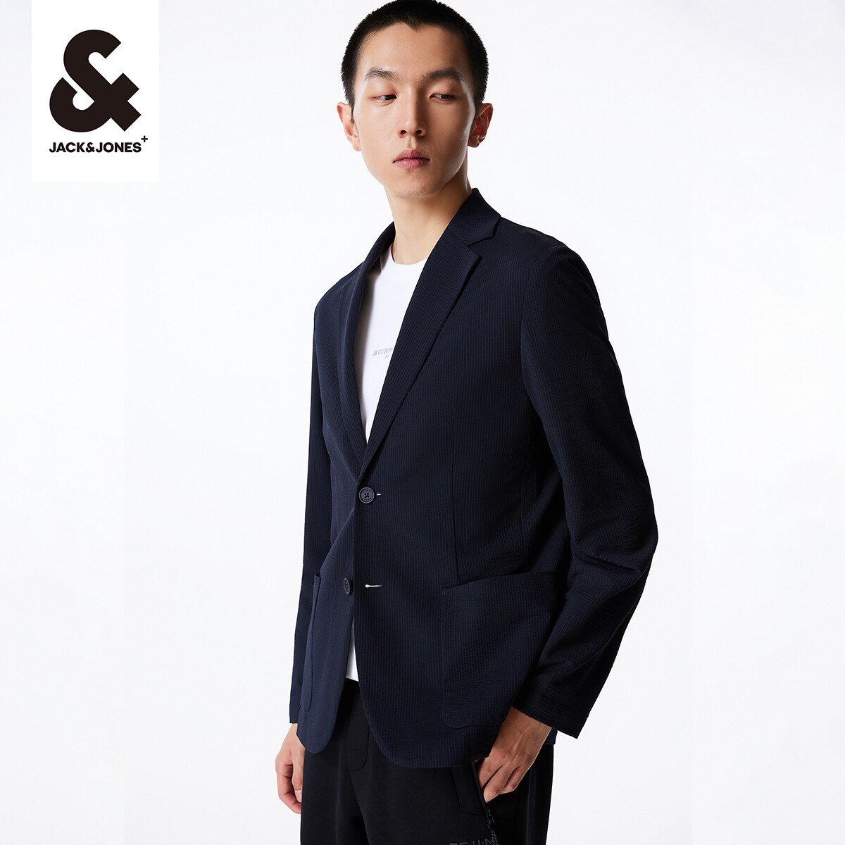 杰克琼斯23秋季outlets新款个性修身泡泡纱透气网眼内里西服外套