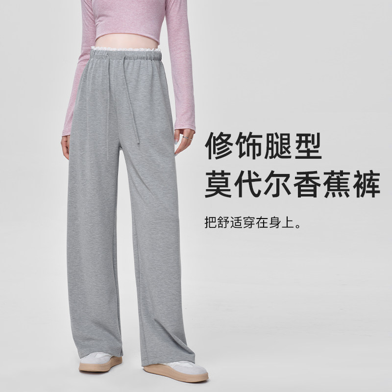 孕妇裤春秋外穿新款垂感长裤莫代尔大码阔腿直筒休闲裤孕早期春装
