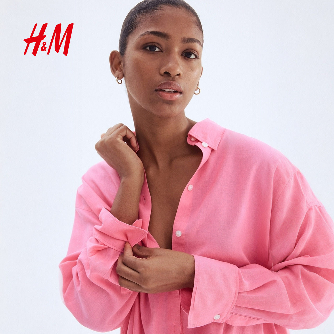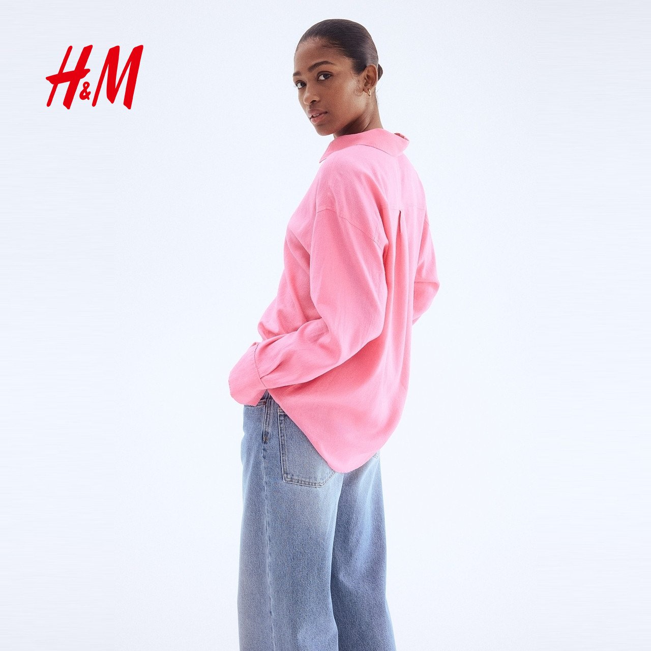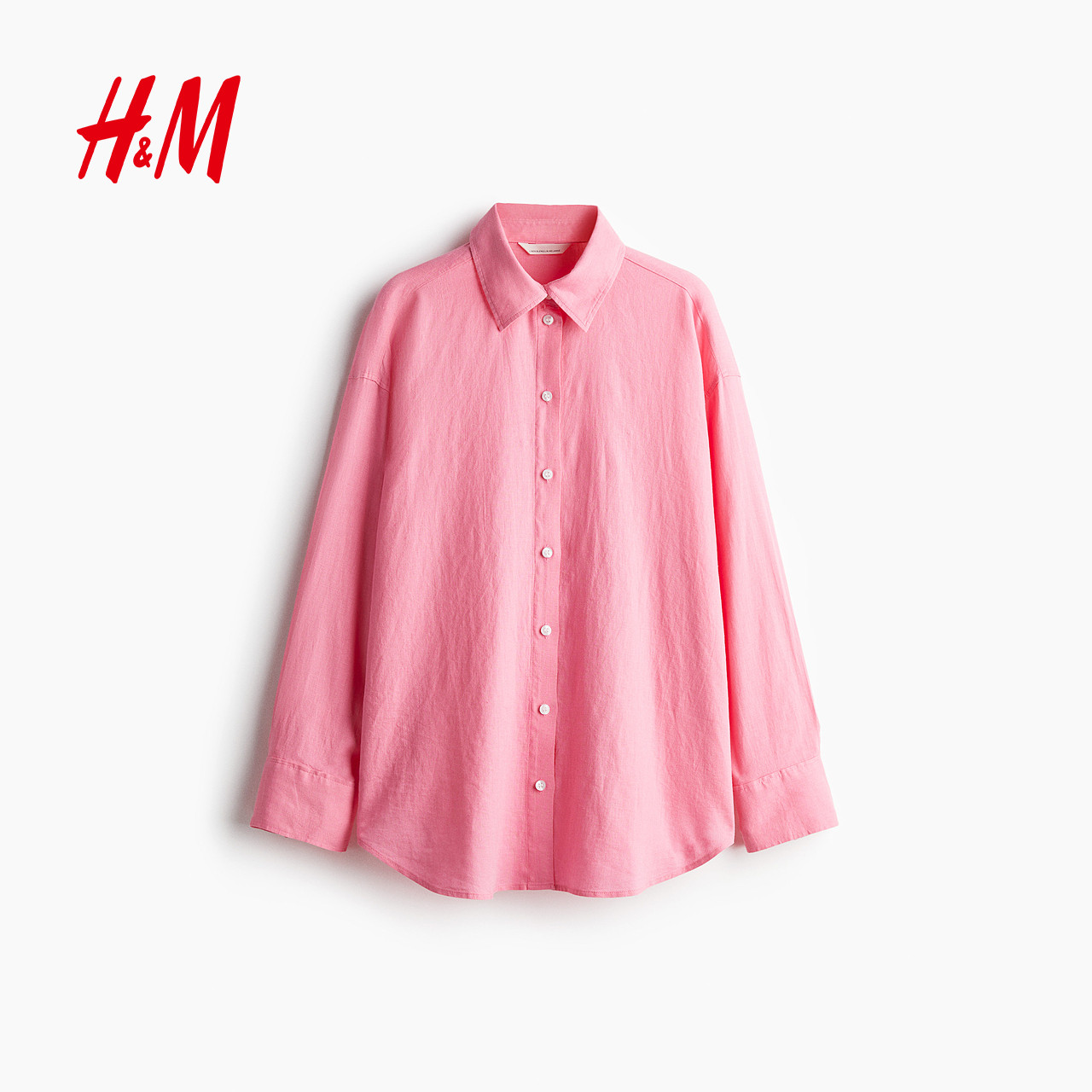 HM女装衬衫春季气质通勤极简上衣亚麻混纺宽松长袖衬衫1283782