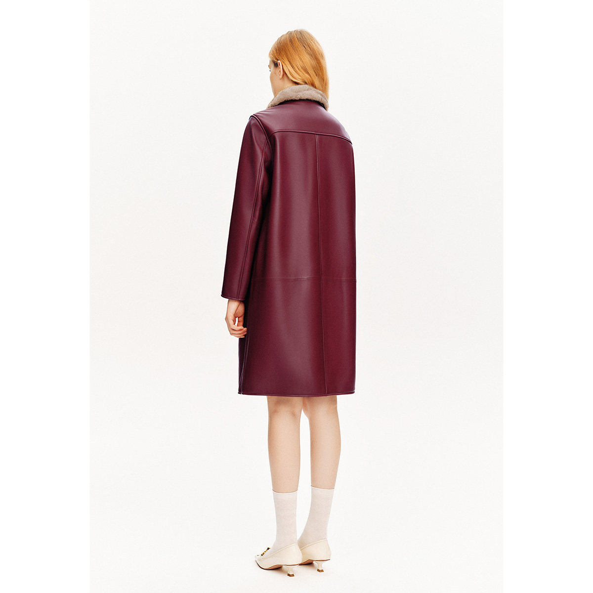 Eland衣恋皮衣女纯色带拉链长袖翻领外套2025冬季新款