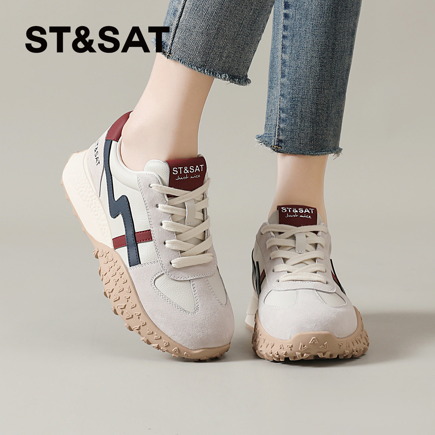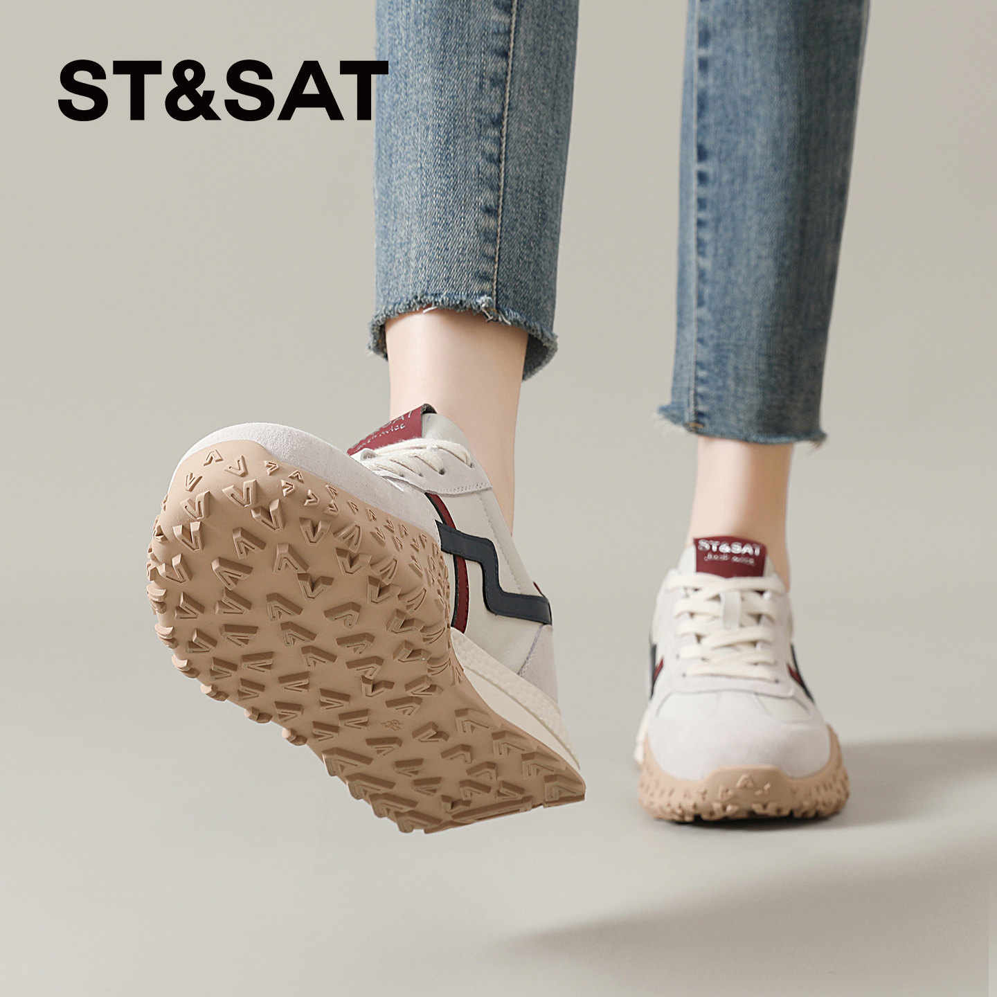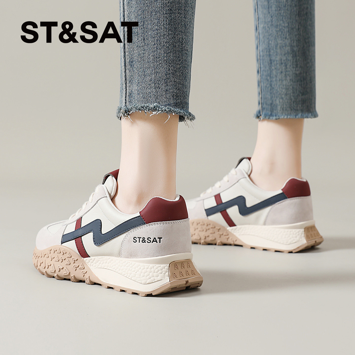 星期六厚底德训鞋女款春季新款复古爆款休闲鞋轻便软底登山运动鞋