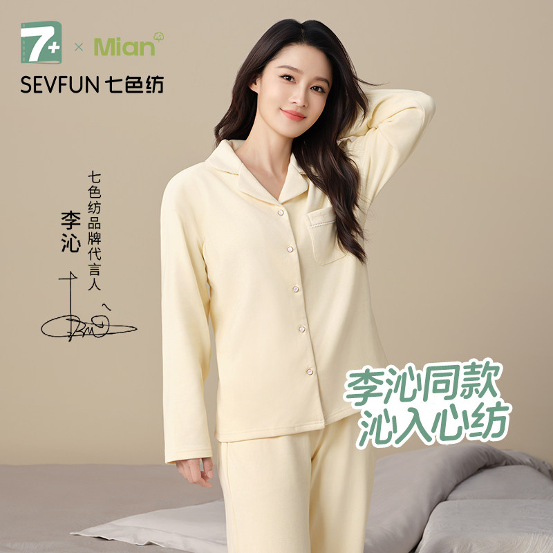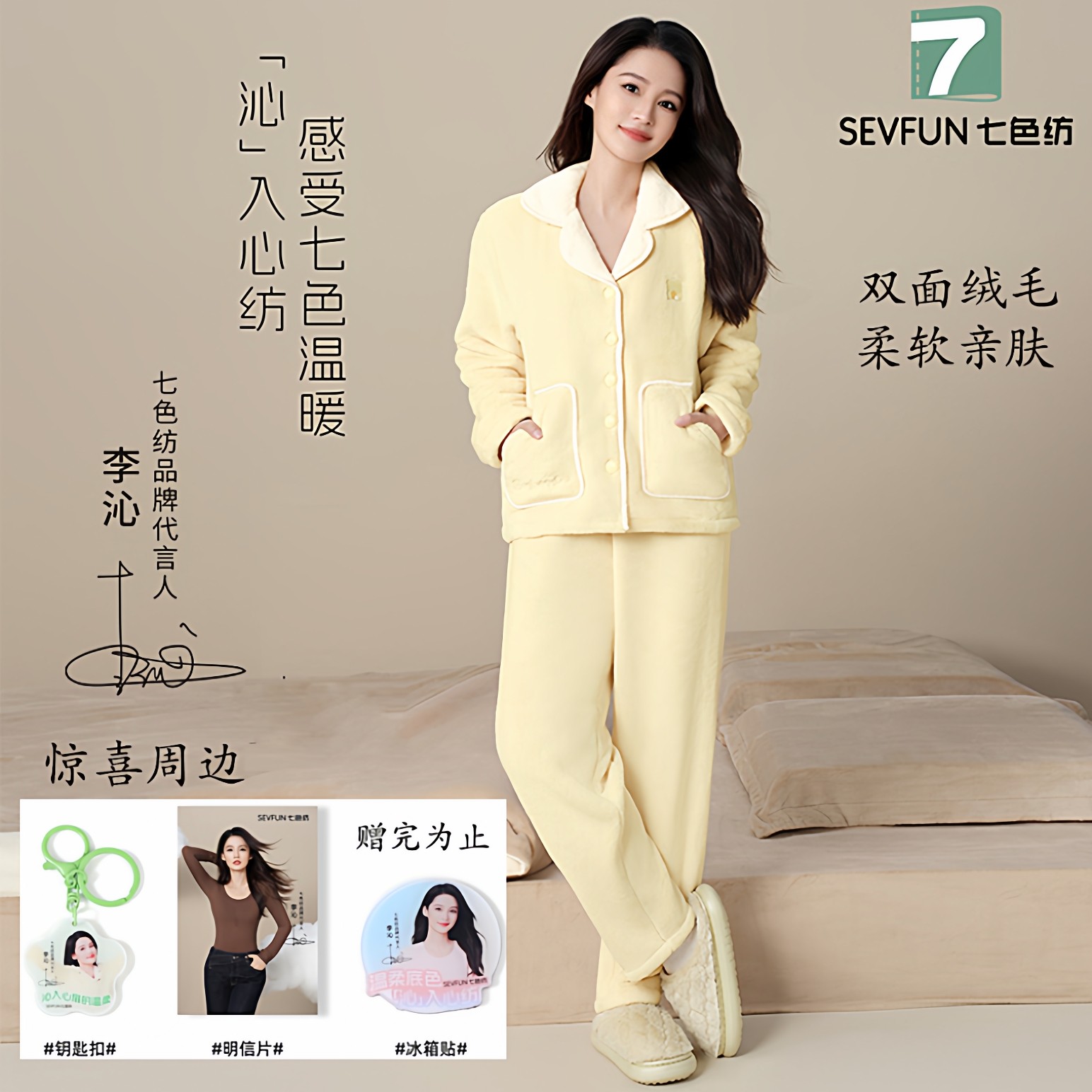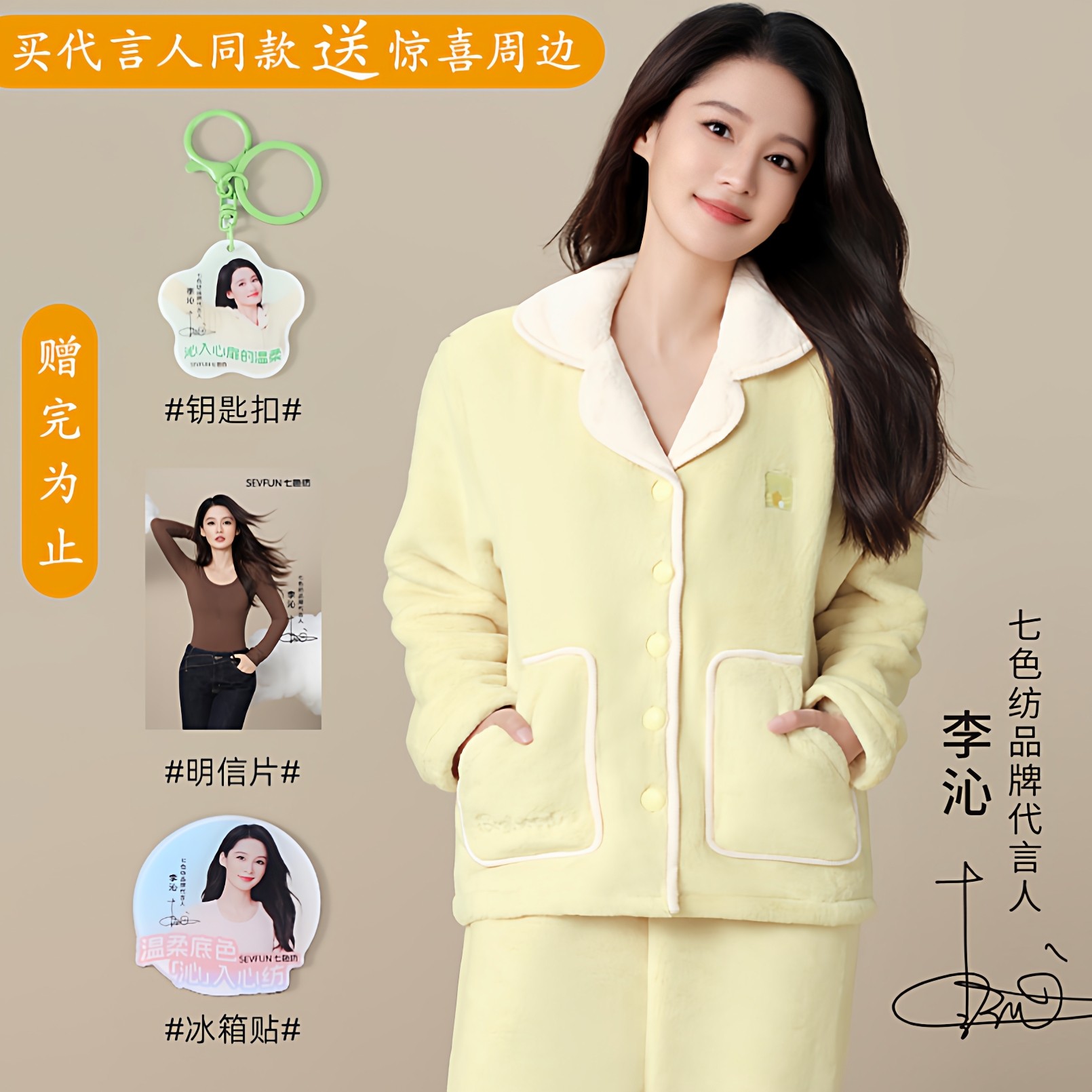 七色纺睡衣【李沁同款】女秋冬季加厚保暖法兰绒家居服套装可外穿