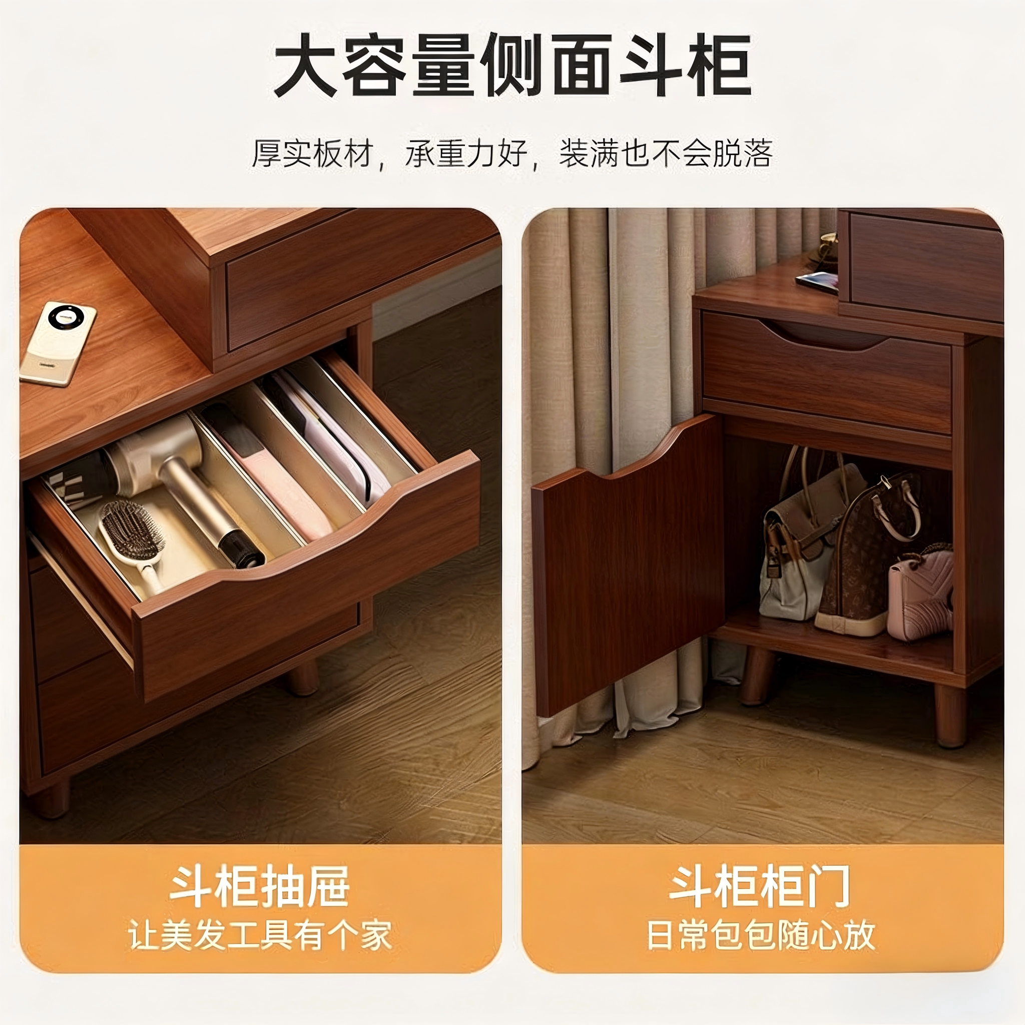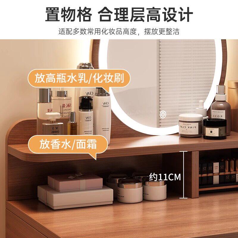梳妆台斗柜一体小户型卧室家用化妆桌中古风2026新款带镜子收纳柜