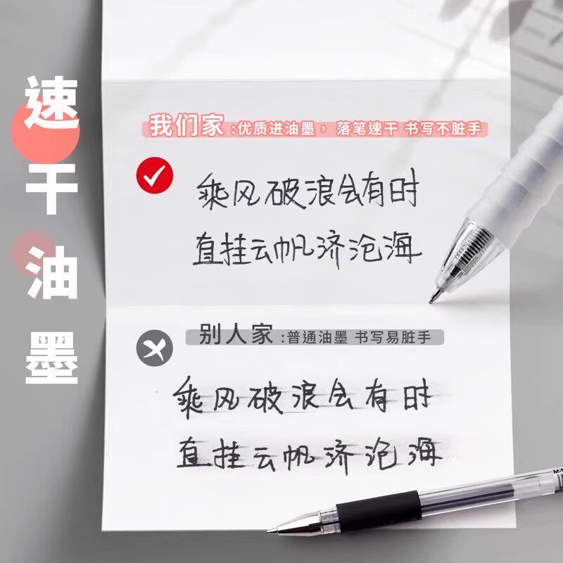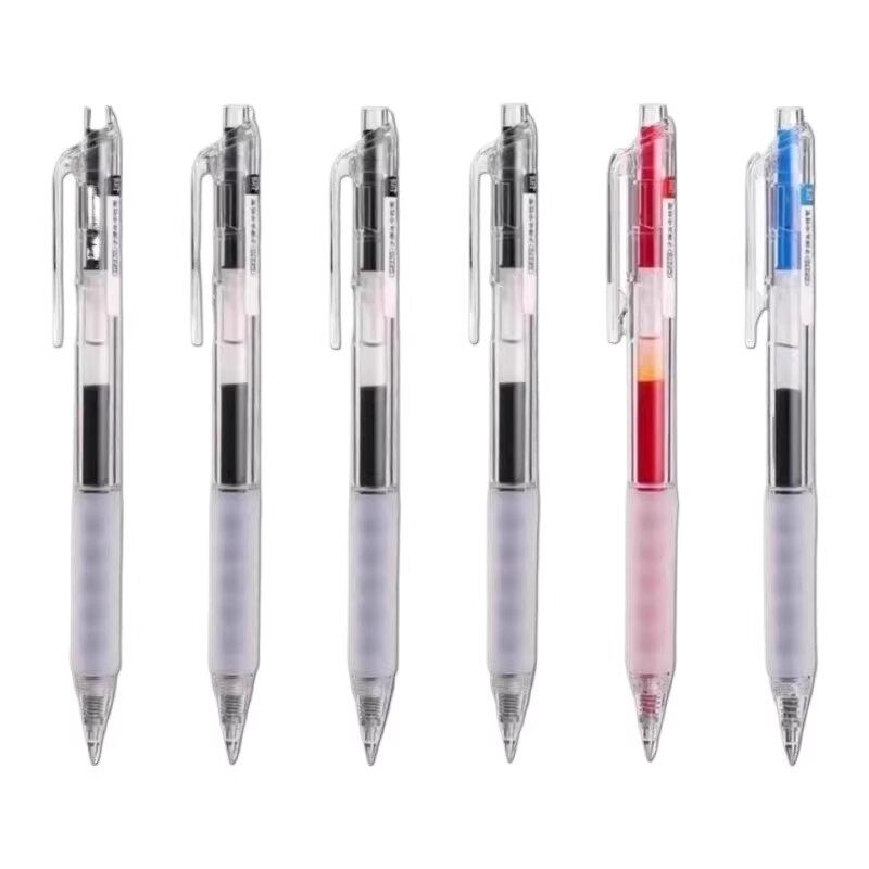 晨光中性笔按动式黑色水笔红色蓝色速干顺滑大容量学生用碳素笔