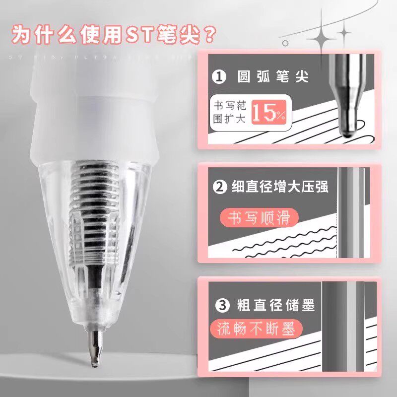 云握ST中性笔黑笔速干顺滑刷题笔按动水性笔舒适云握手软胶高颜值学生考试笔黑色笔0.5mm神器不断墨红色握感